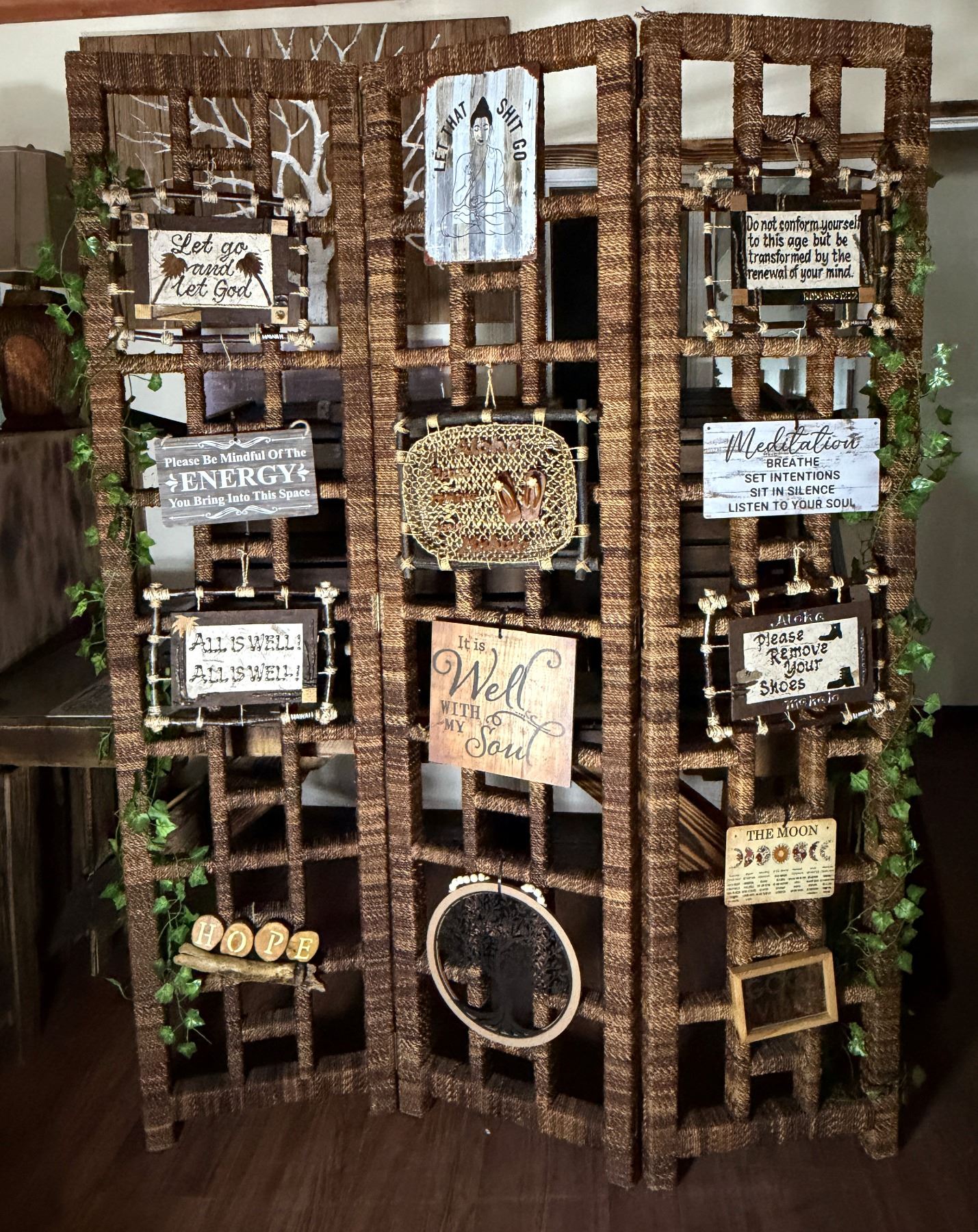 Woven 3-Panel Screen w/ Misc Artwork 60" x 76"
