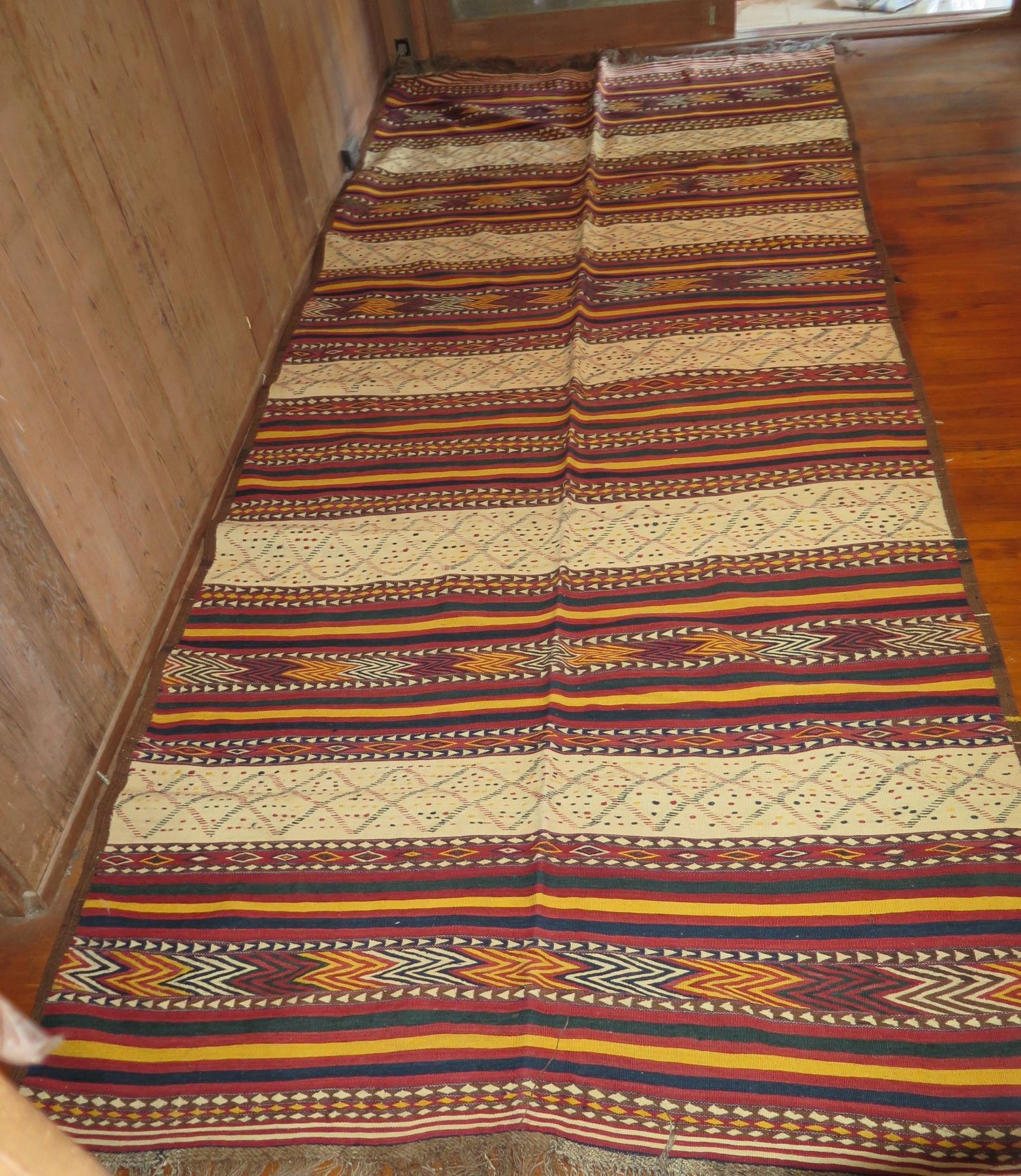 Woven Area Rug, Geometric Pattern Red/Cream/Yellow/Black 154" x 65"