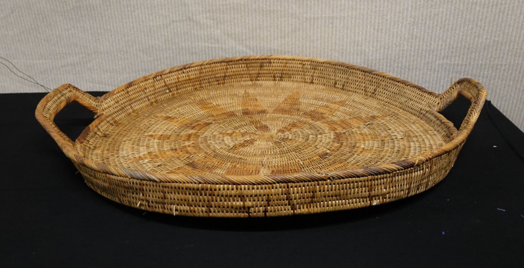 Woven Basket Tray w/ Handles from Bali 25" Dia, 3.5"H