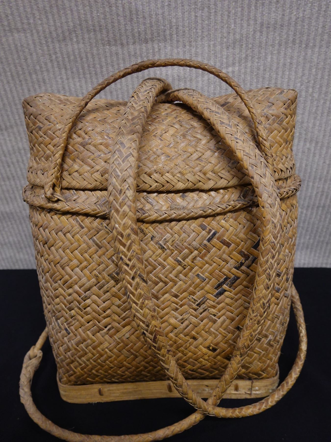 Woven Basket w/ Lid & Straps from New Guinea 10" x 12"H