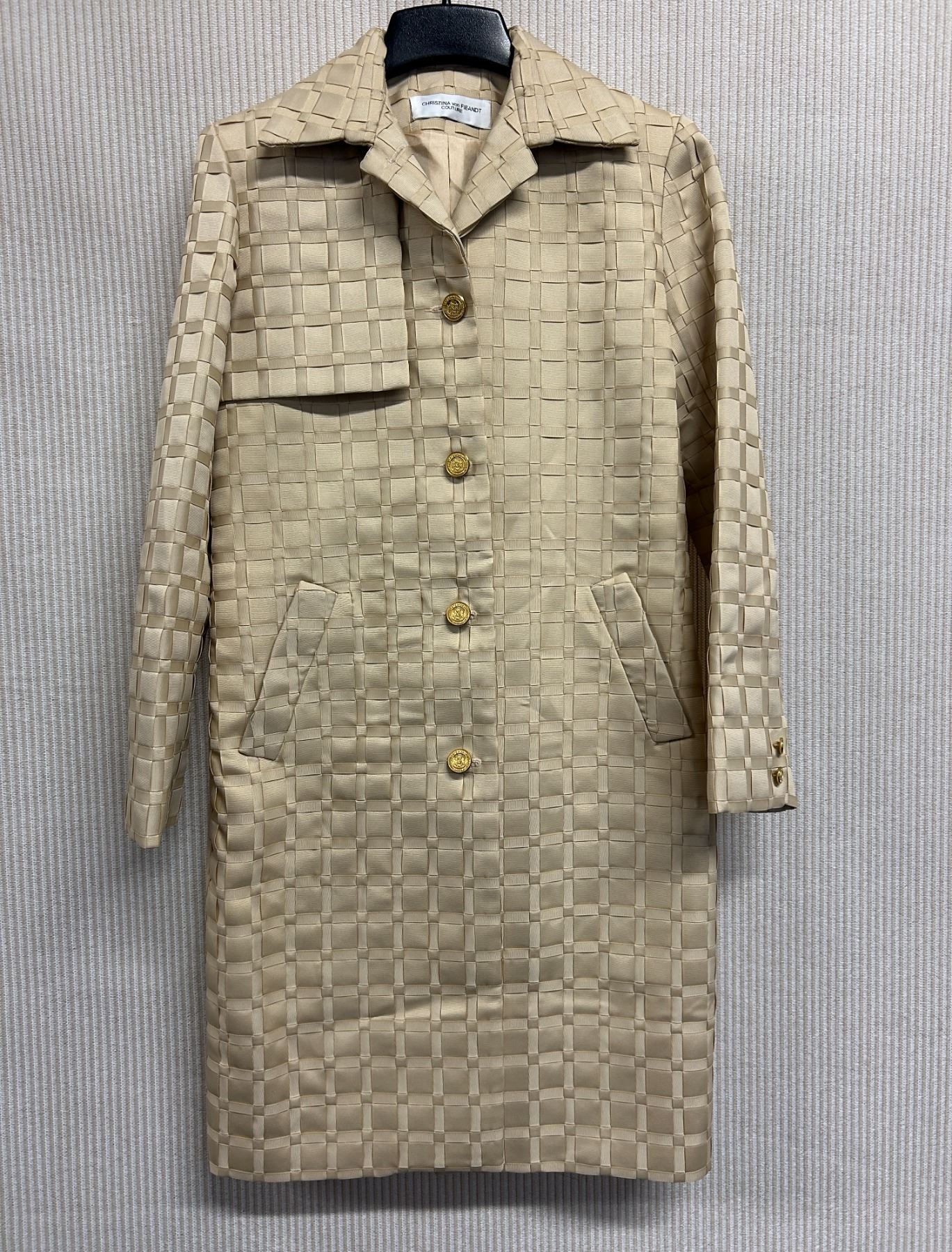 Woven Beige Grosgrain Trench Coat, No Tag. Size 2