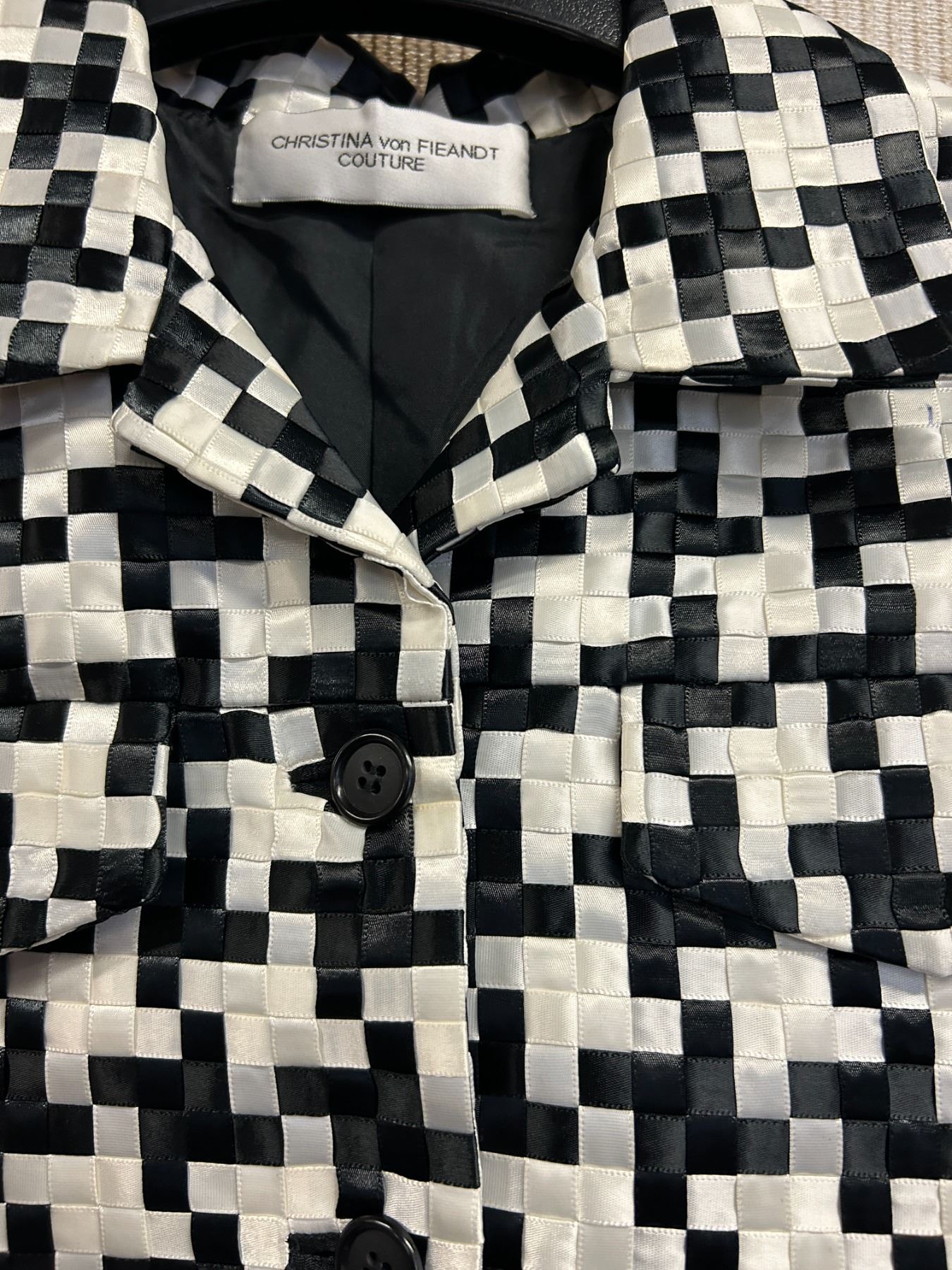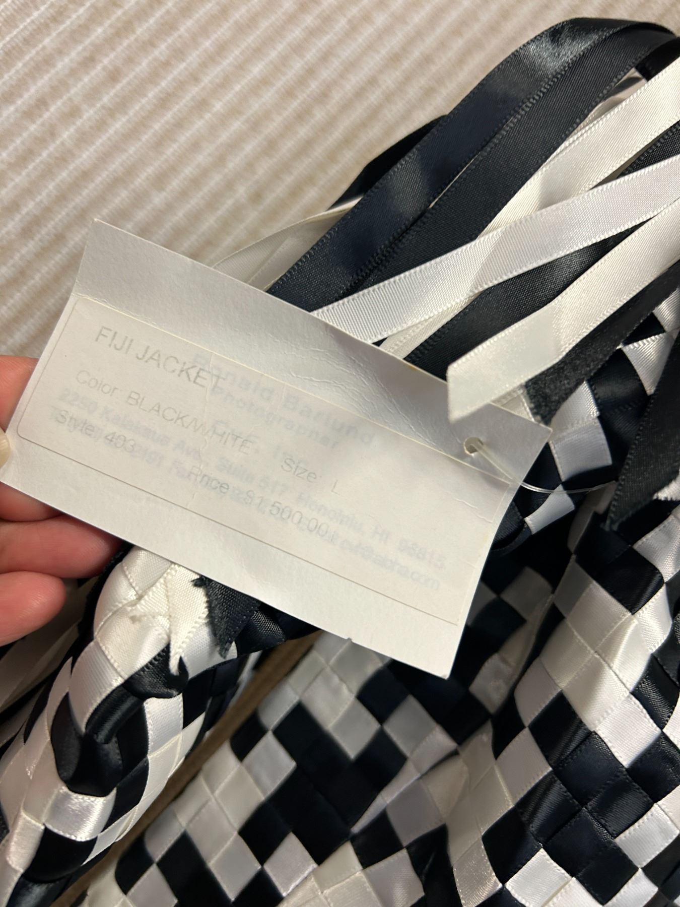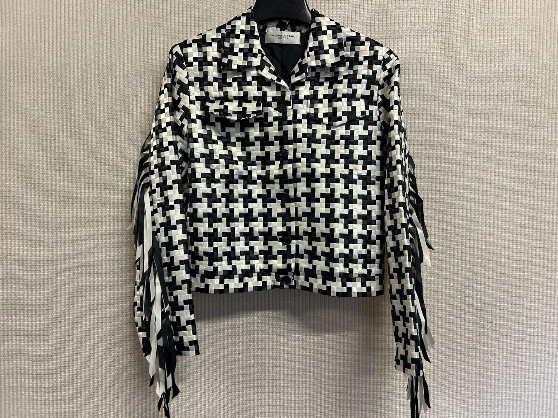 Christina von Fieandt Woven Black-White Fiji Jacket w/ Fringe, Size L, New with Tag (retail $1500)