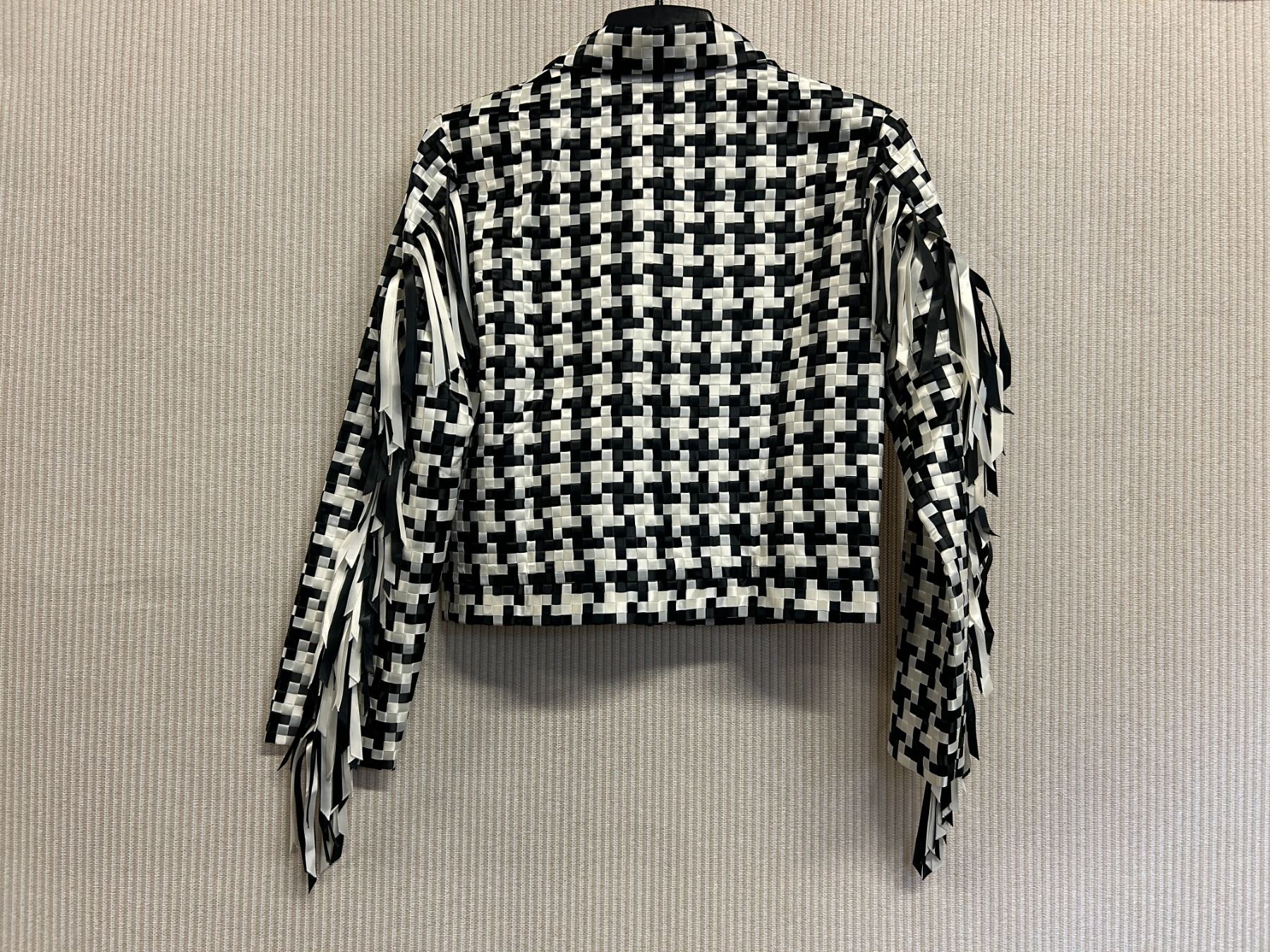 Christina von Fieandt Woven Black-White Fiji Jacket w/ Fringe, Size M, New with Tag (retail $1500). Fringed arms. Lined.