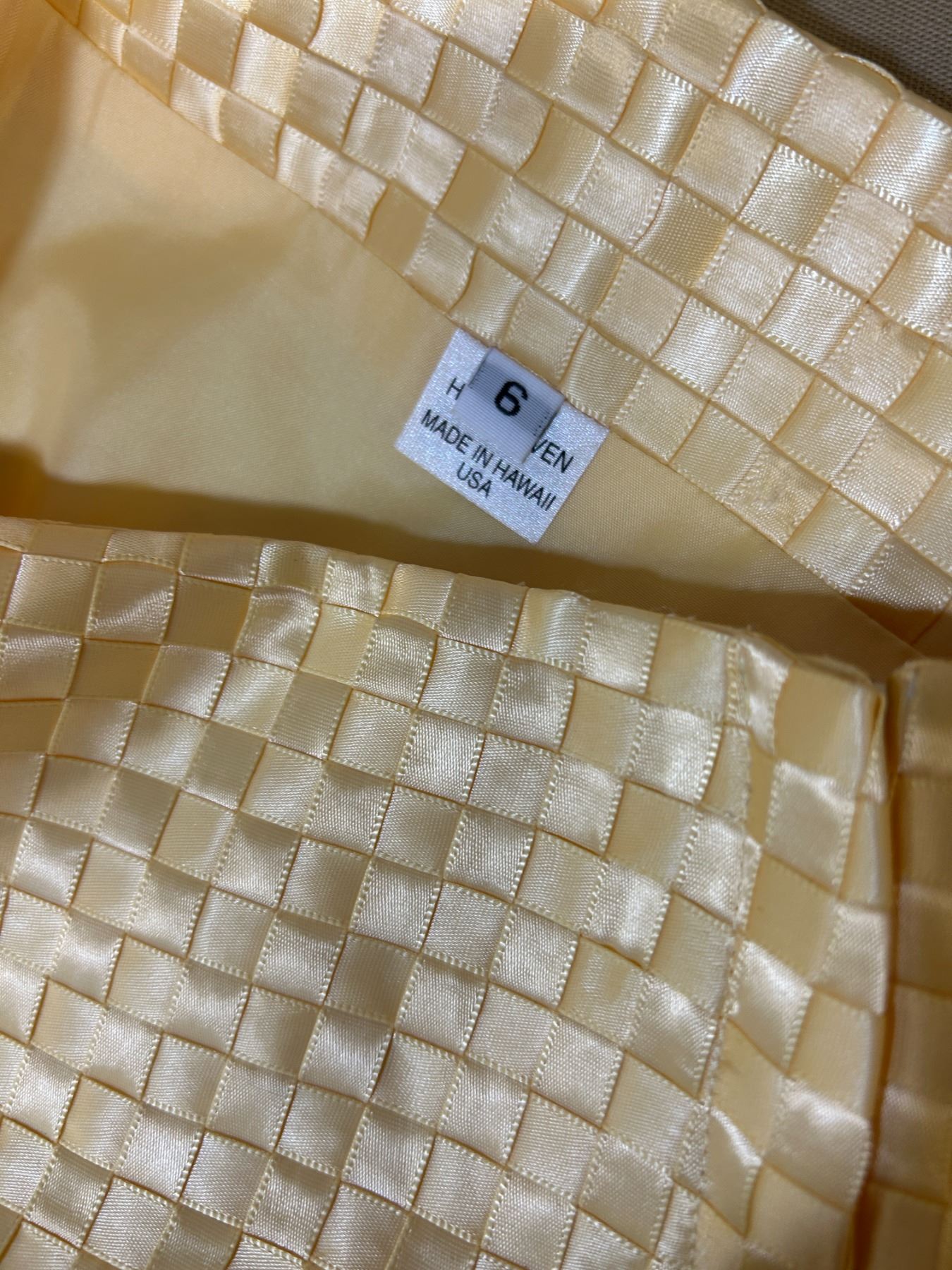 Christina Von Fieandt resided in Hawaii for 38 years and was highly esteemed for her innovative approach in reimagining the traditional Hawaiian art of lauhala weaving into ribbon weaving to create her one-of-a kind designer dresses, evening gowns, coats, jackets, suits, and accessories. Her creations have graced runways and outfitted dozens of pageant contestants, including winners of titles like Miss America, Mrs. America, Mrs. USA, Miss USA, and Miss Universe along with contestants representing other countries. Her regular clientele included prominent business leaders and influential political figures in Hawaii.