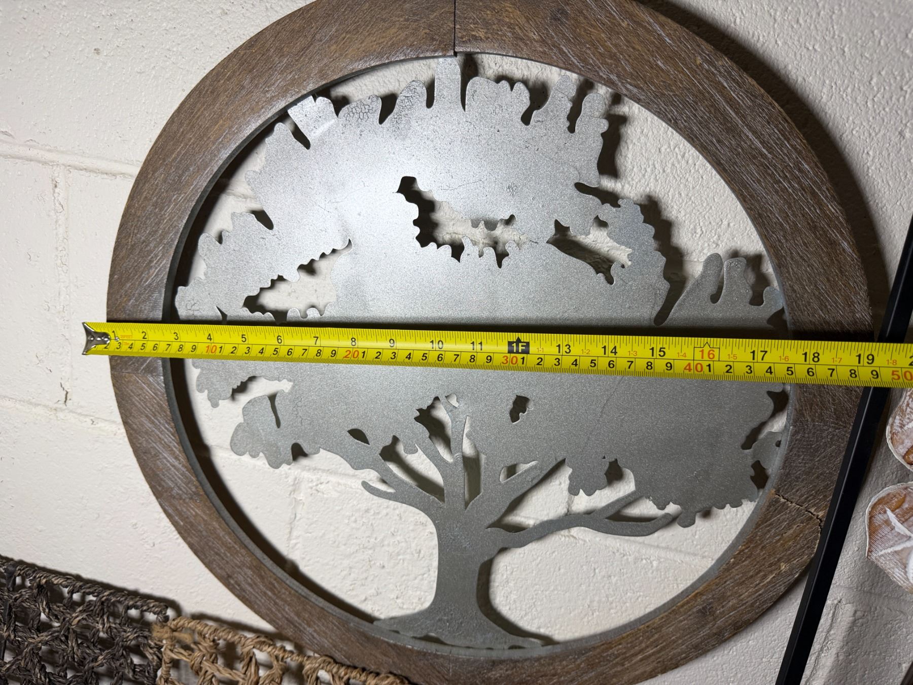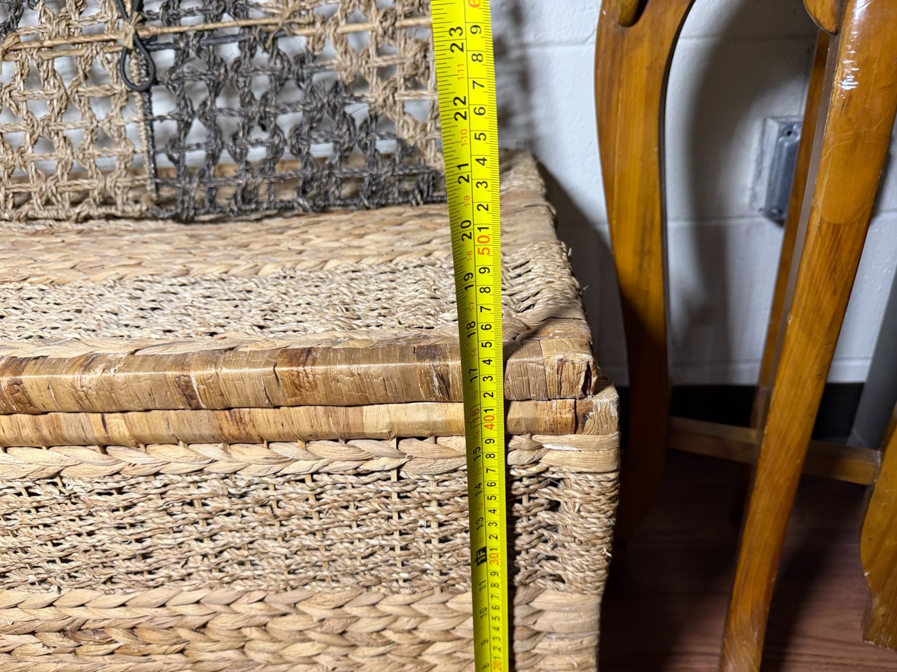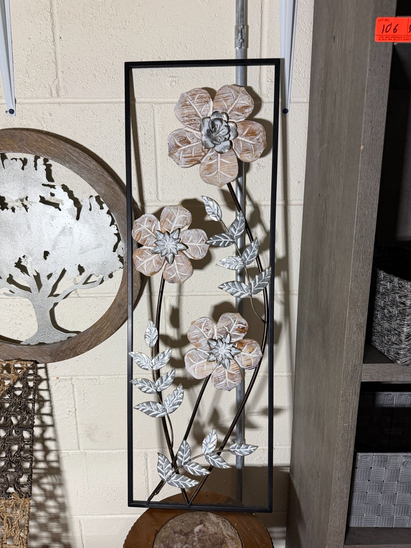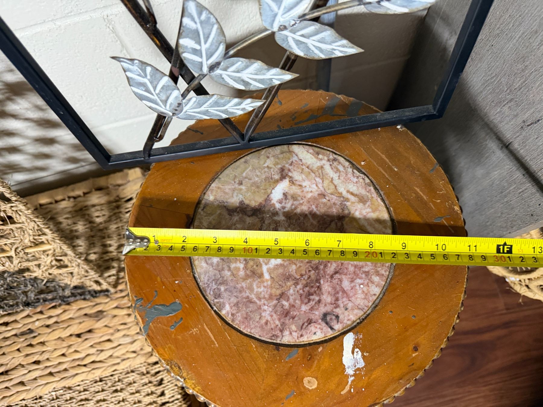 Woven Chest, 3 Misc Wall Hangings & Round Table w/ Cabriole Legs, Misc Sizes