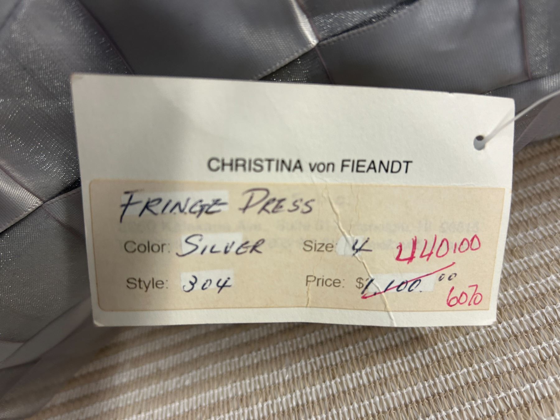 Christina von Fieandt Woven Cocktail Fringe Dress, Silver, Size 4, New with Tag (retail $1100)