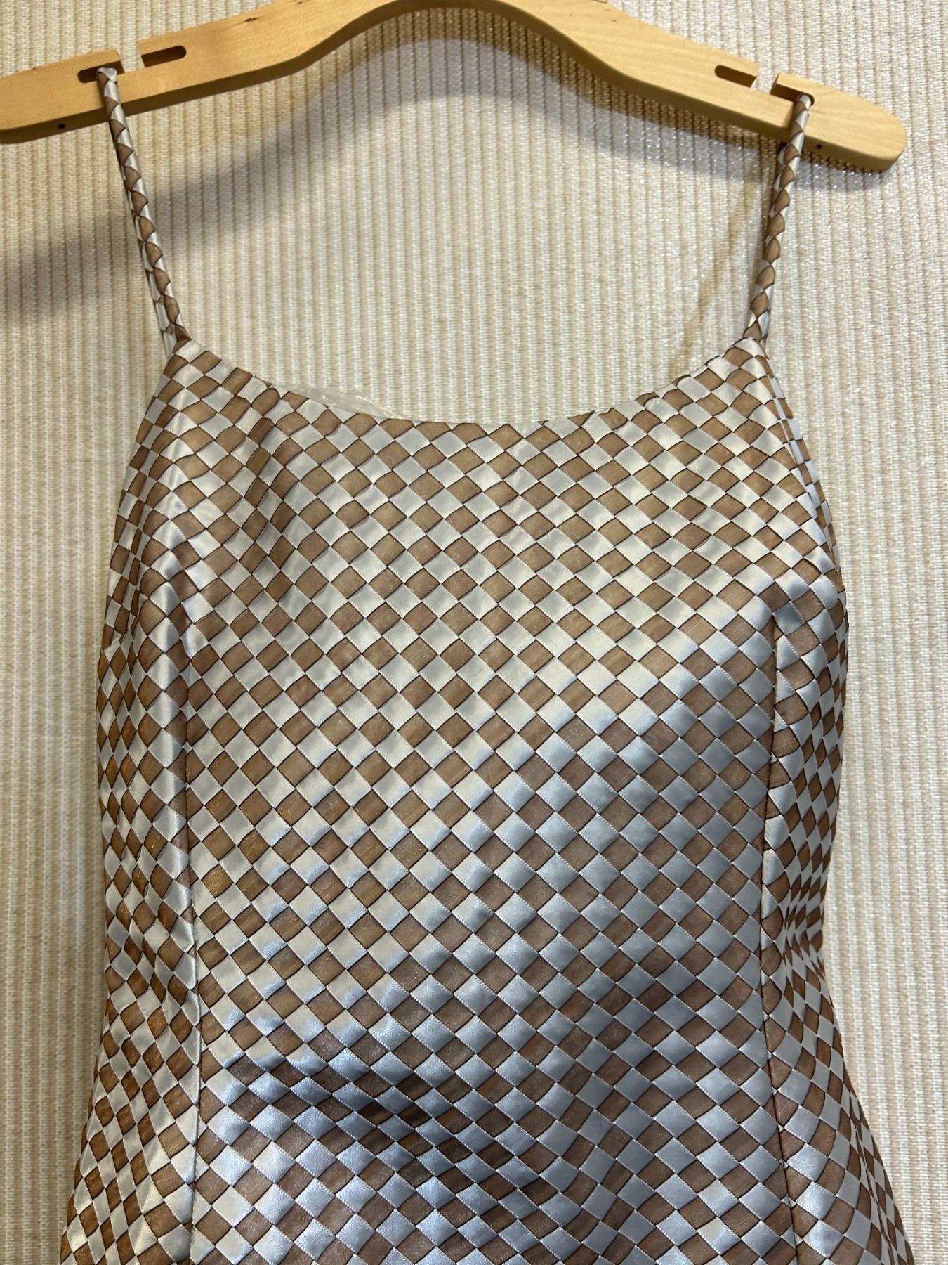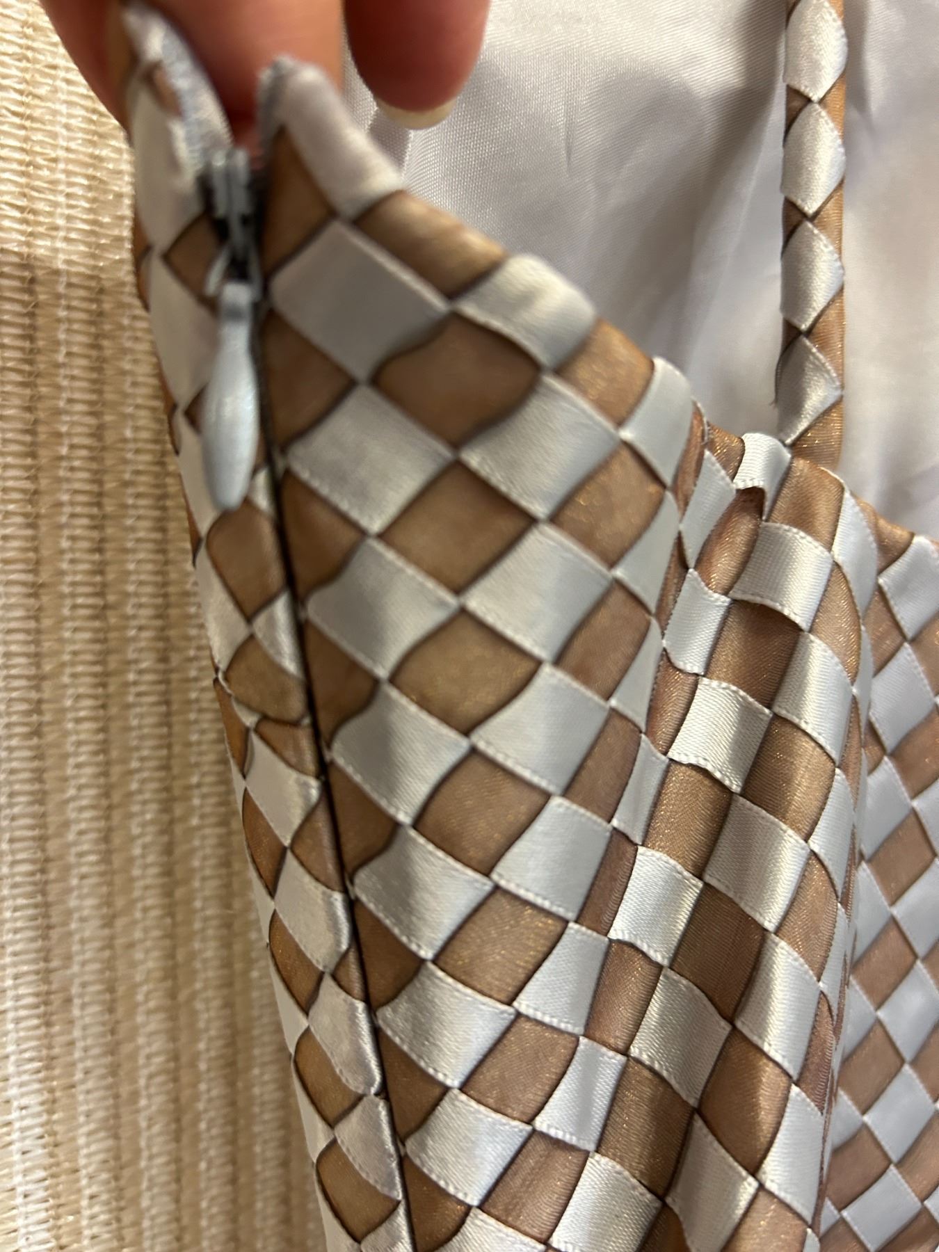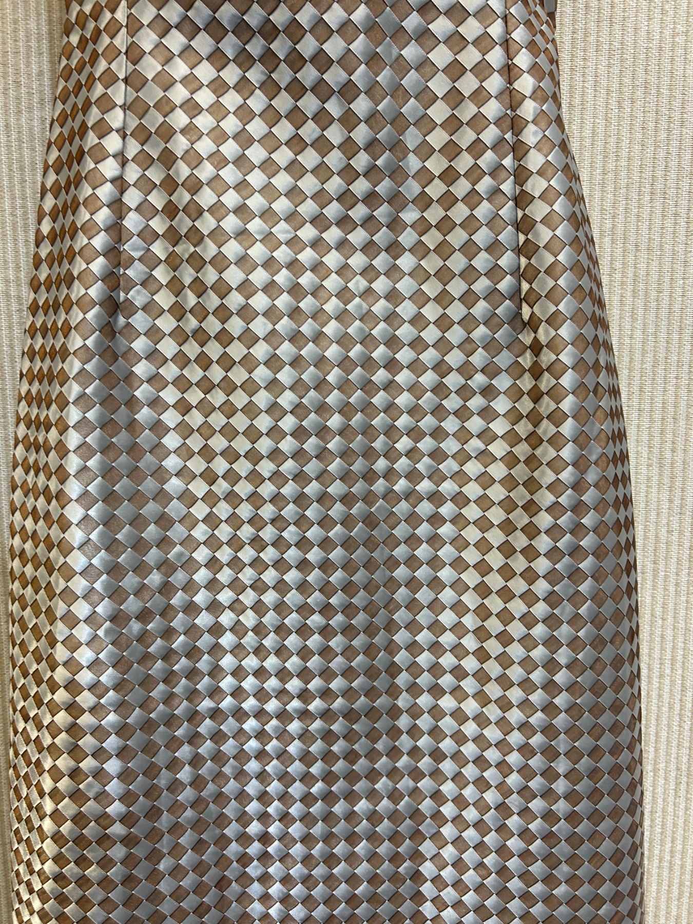 Christina von Fieandt Woven Cocktail Long Dress, White & Brown, New - No Tag (Bust Approx. 34", Waist 32").