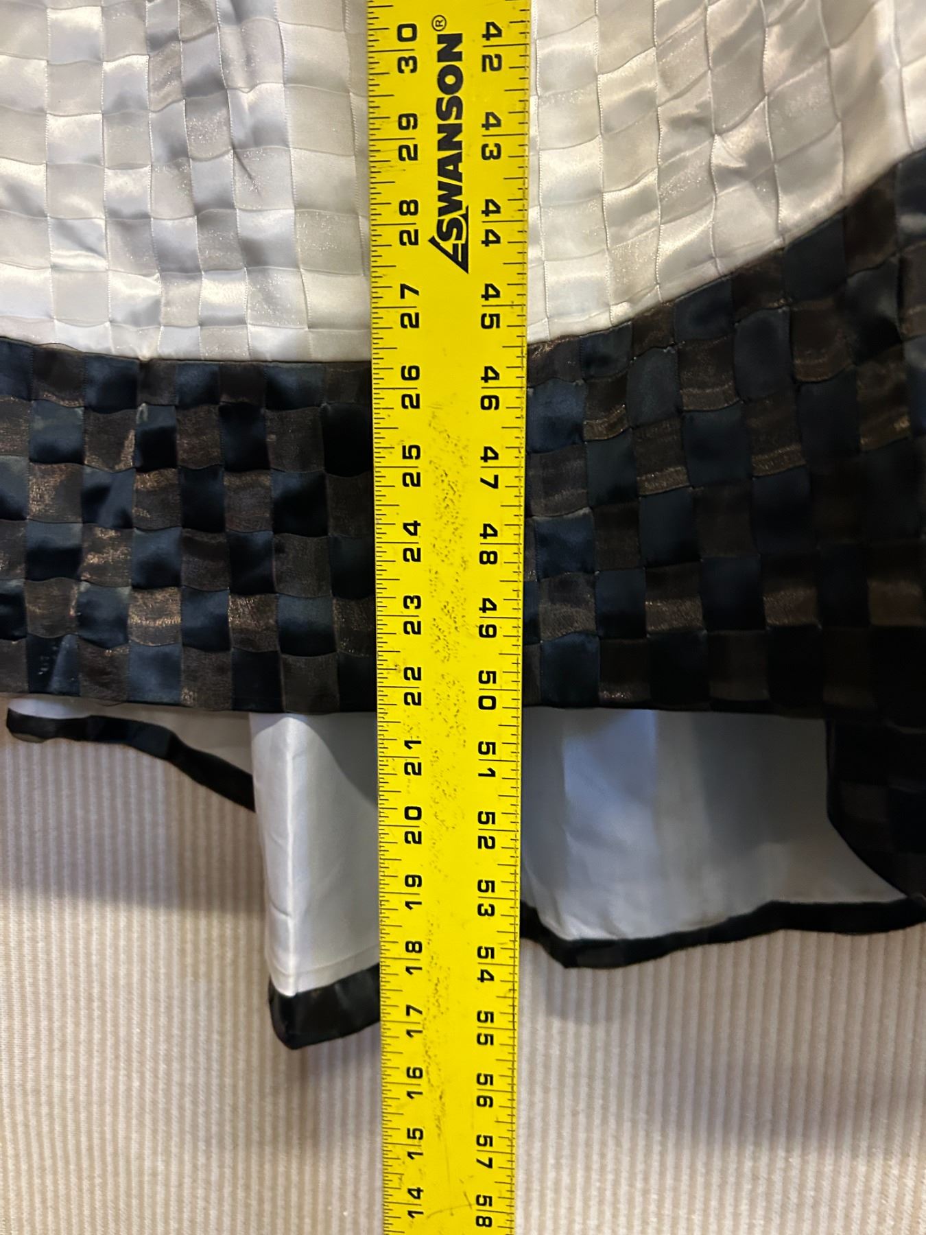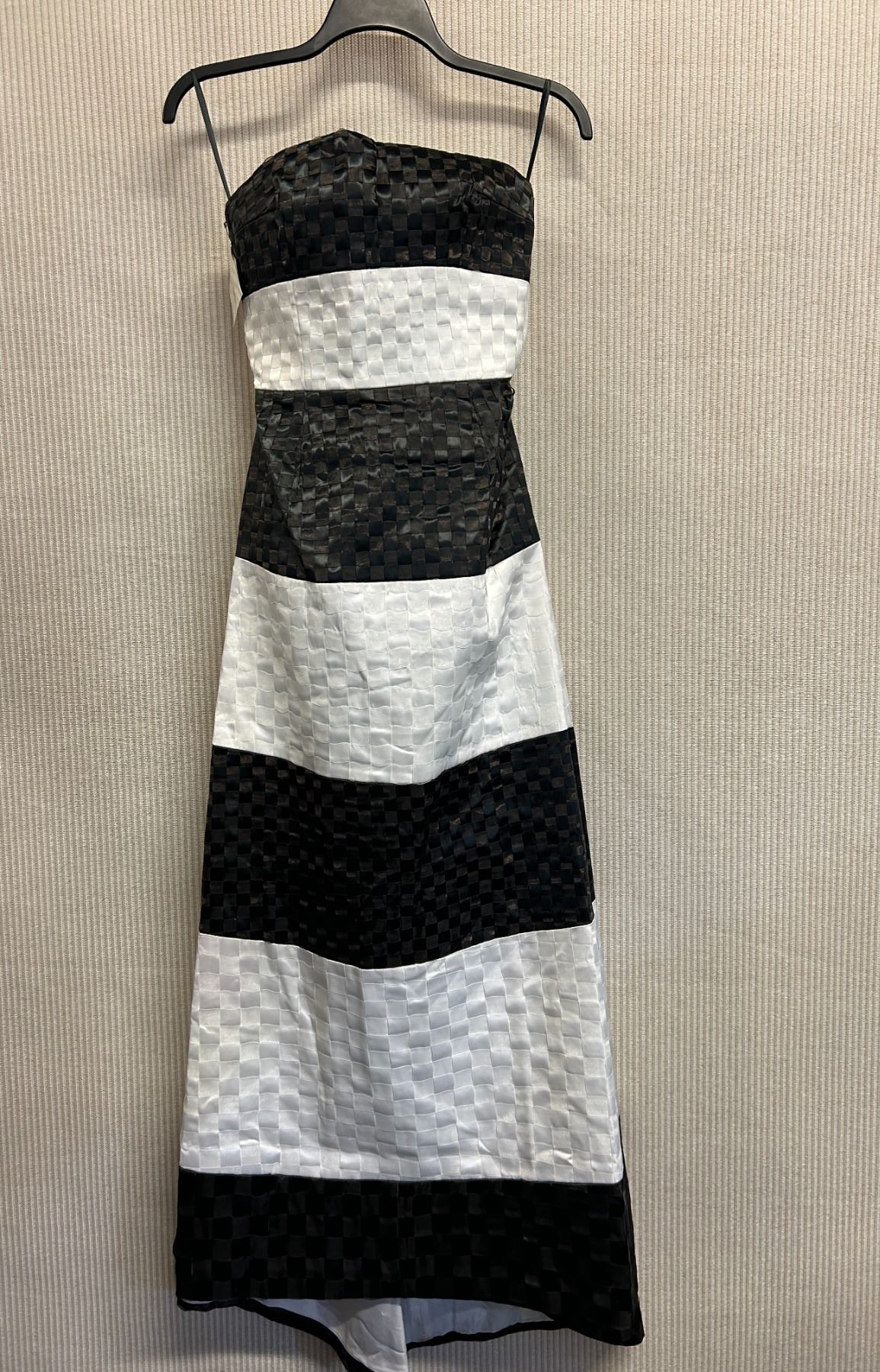 Christina von Fieandt Woven Cocktail Wave Gown, Black & White, Size 2, with tag (Original Retail $2250). The last image illustrates this design on a pageant celeb.