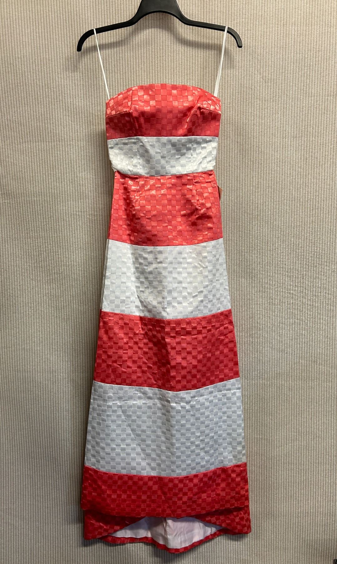 Christina von Fieandt Woven Cocktail Wave Gown, Rose & White, Size 2, New with Tag (original retail $2250). The last image illustrates this design (in a different color) on a pageant celeb.