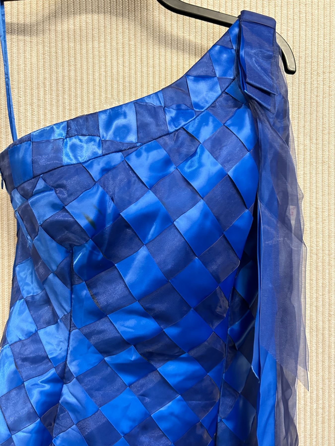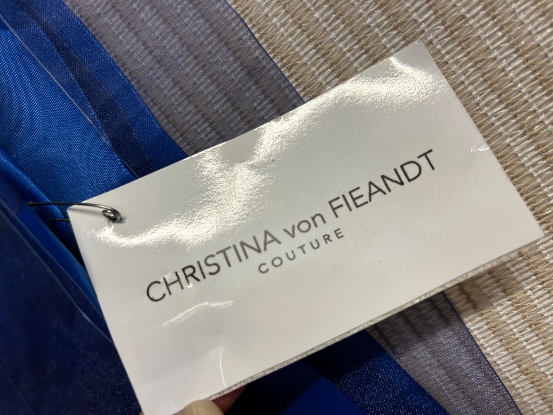 Christina von Fieandt Woven Fringe Mermaid Gown, Royal Blue, Size 6, New with Tag (retail $1600)(faint stains)