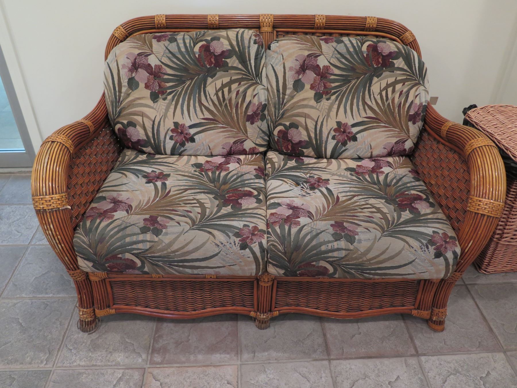 Woven Loveseat w/ Tropical Print Cushions 58"x38"x34"