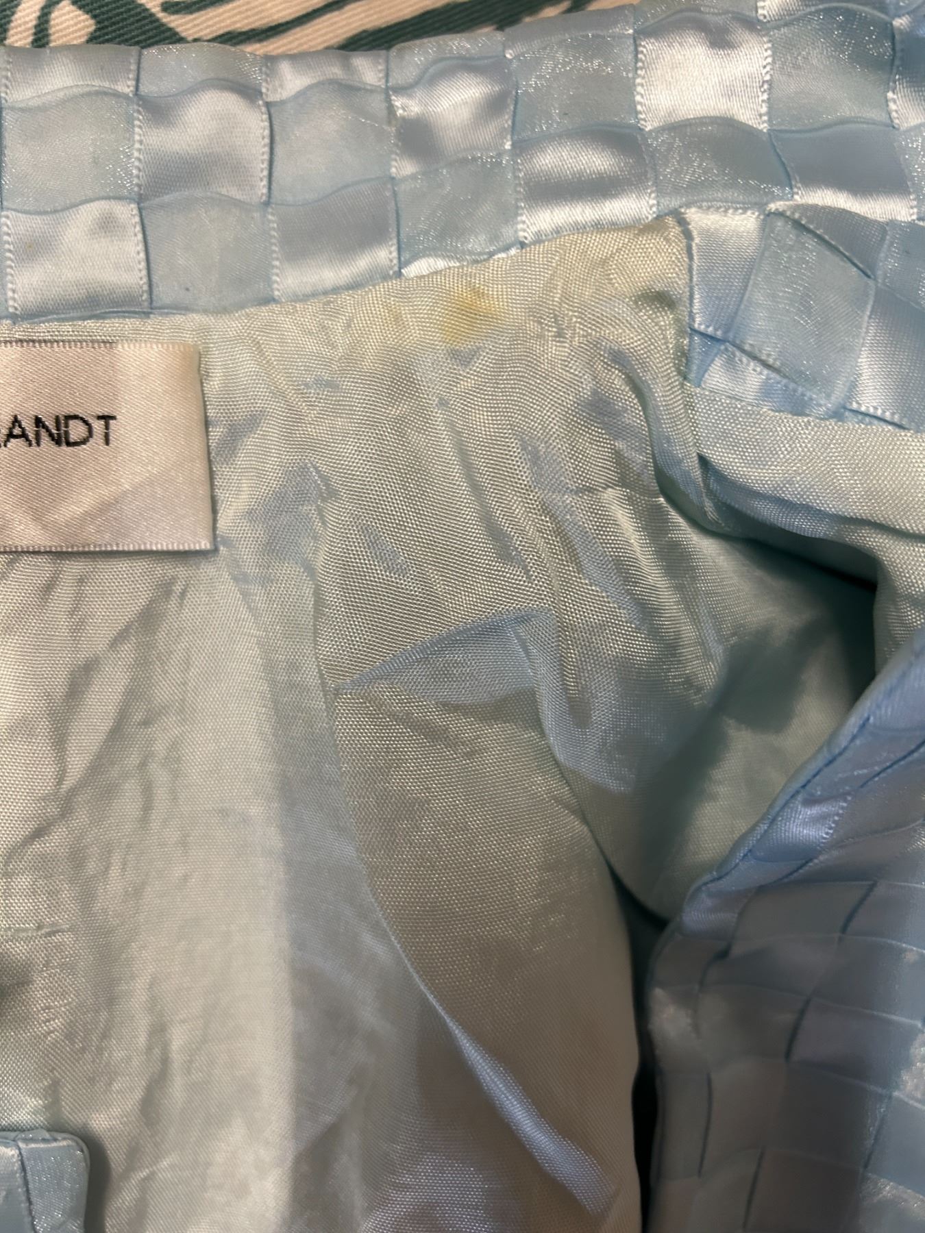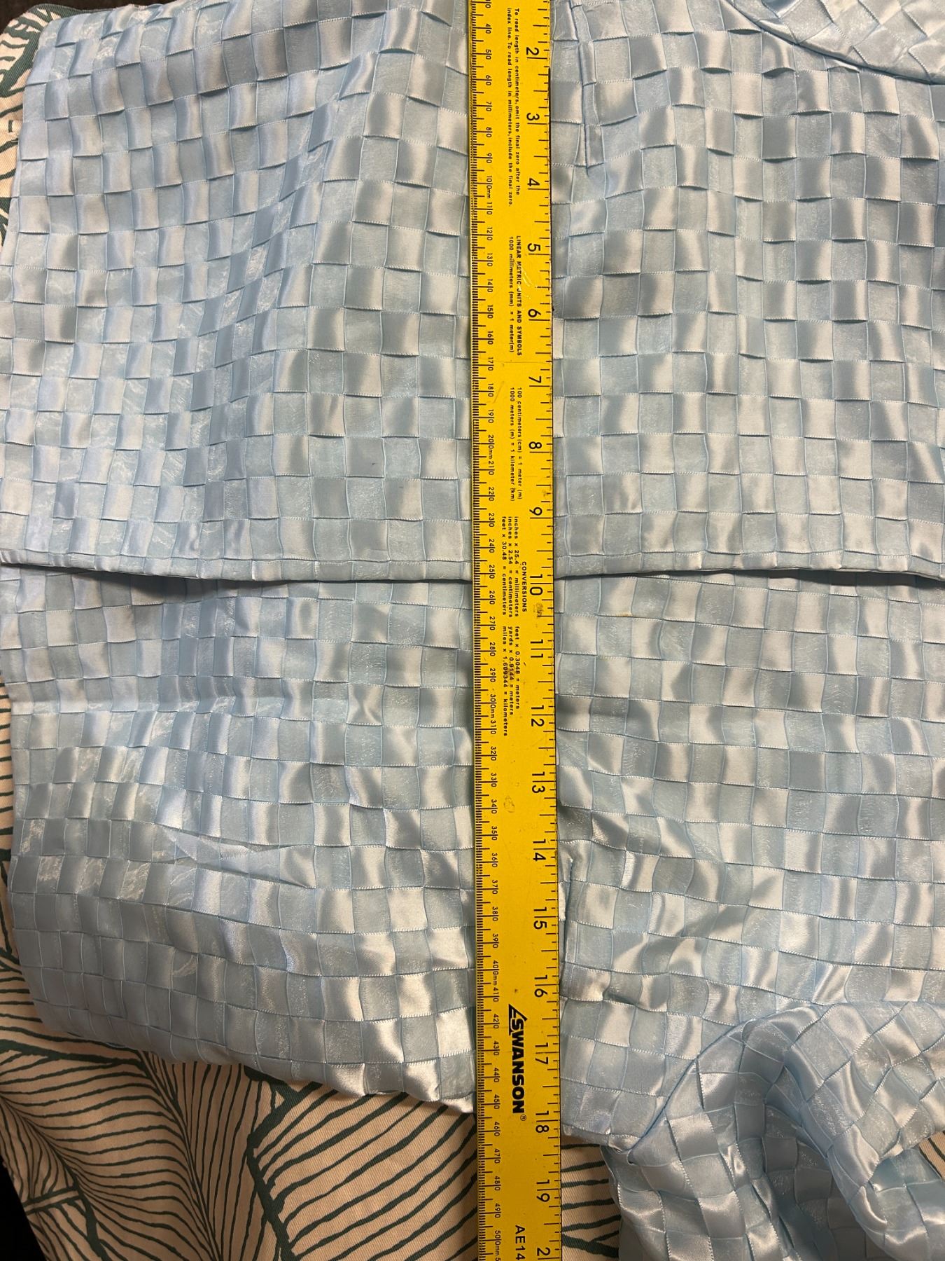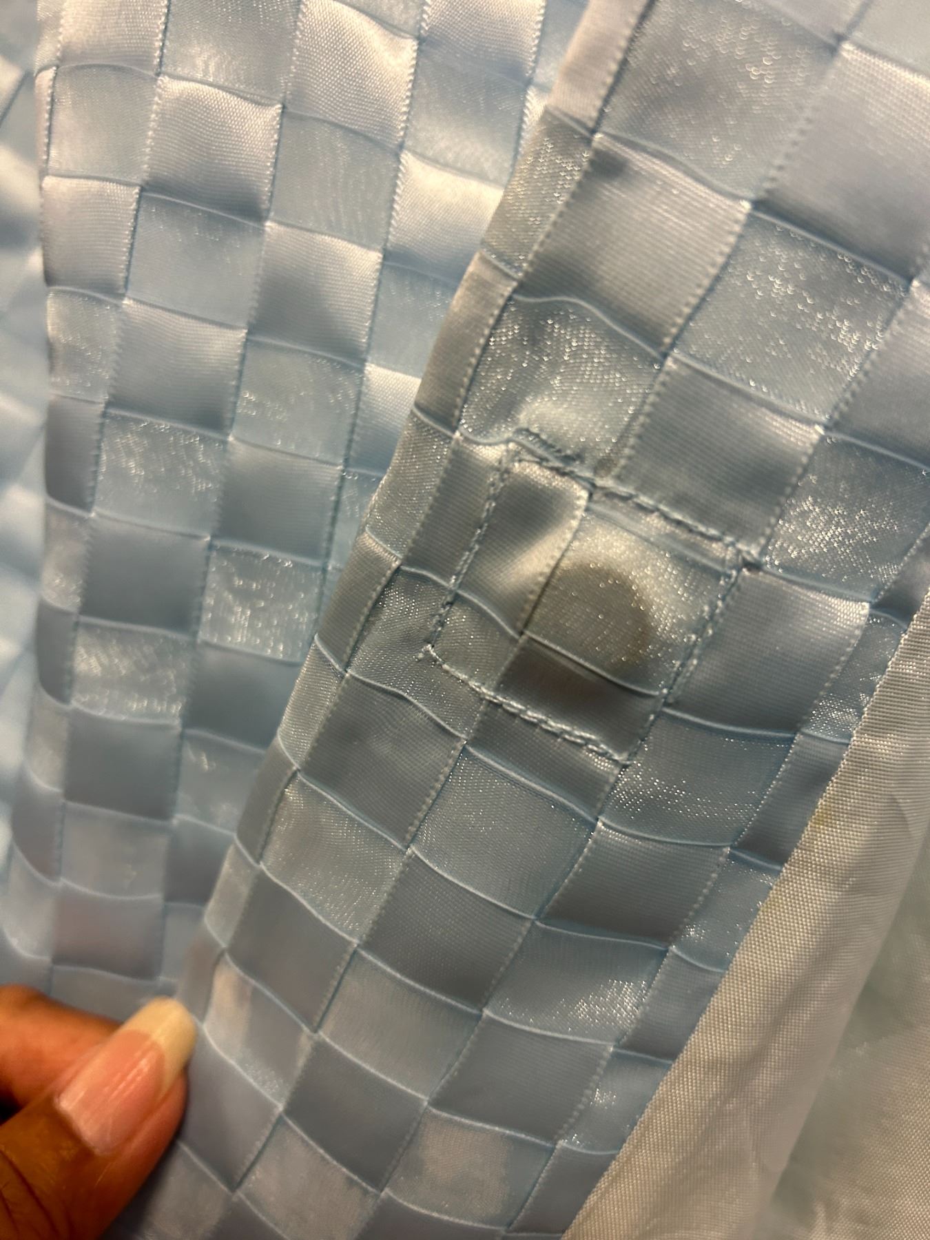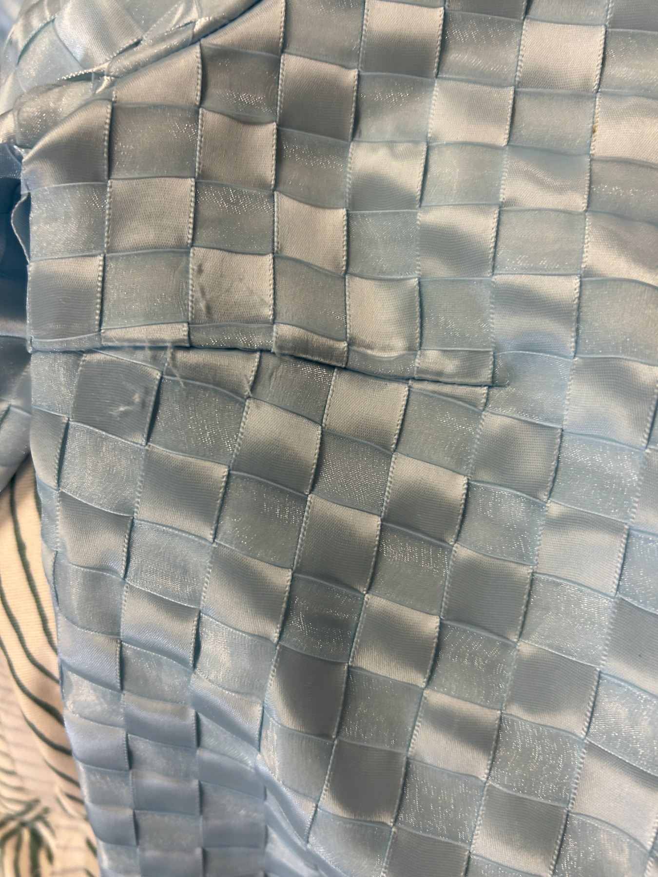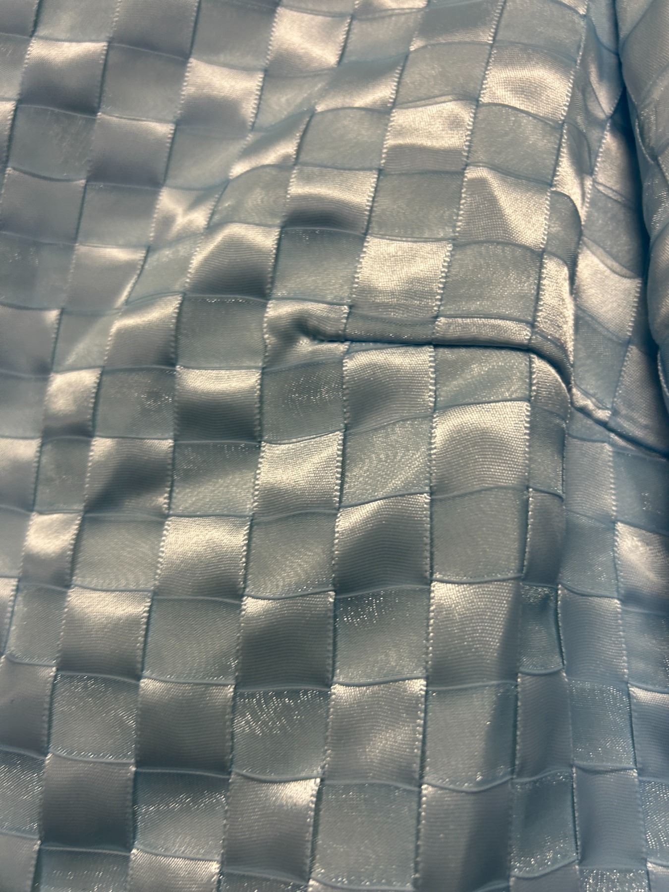 Christina von Fieandt Woven Lt. Gray Satin and Chiffon Jacket, Hidden Magnetic Buttons, No Tag. Has faint stains as shown in the pictures.
