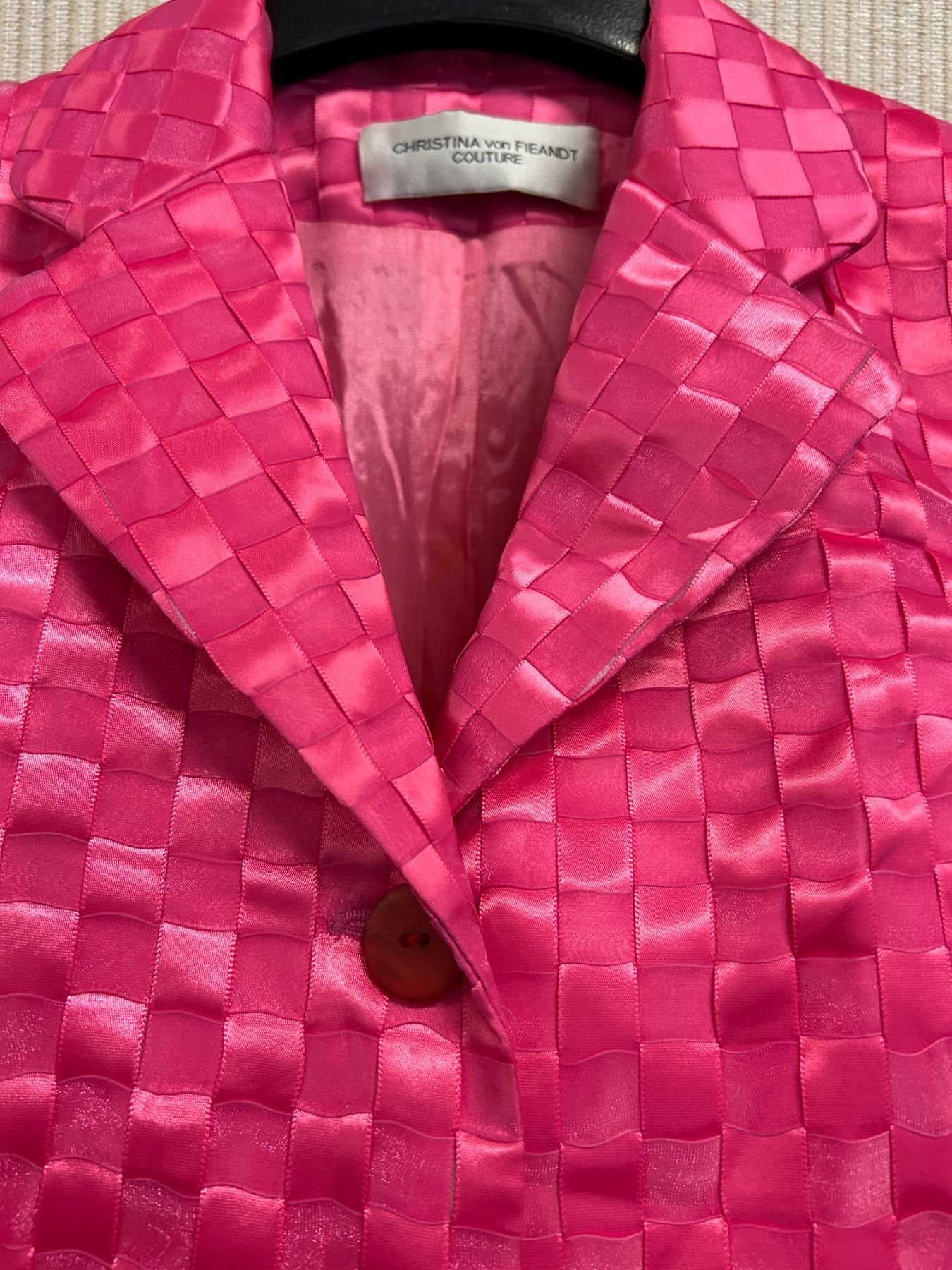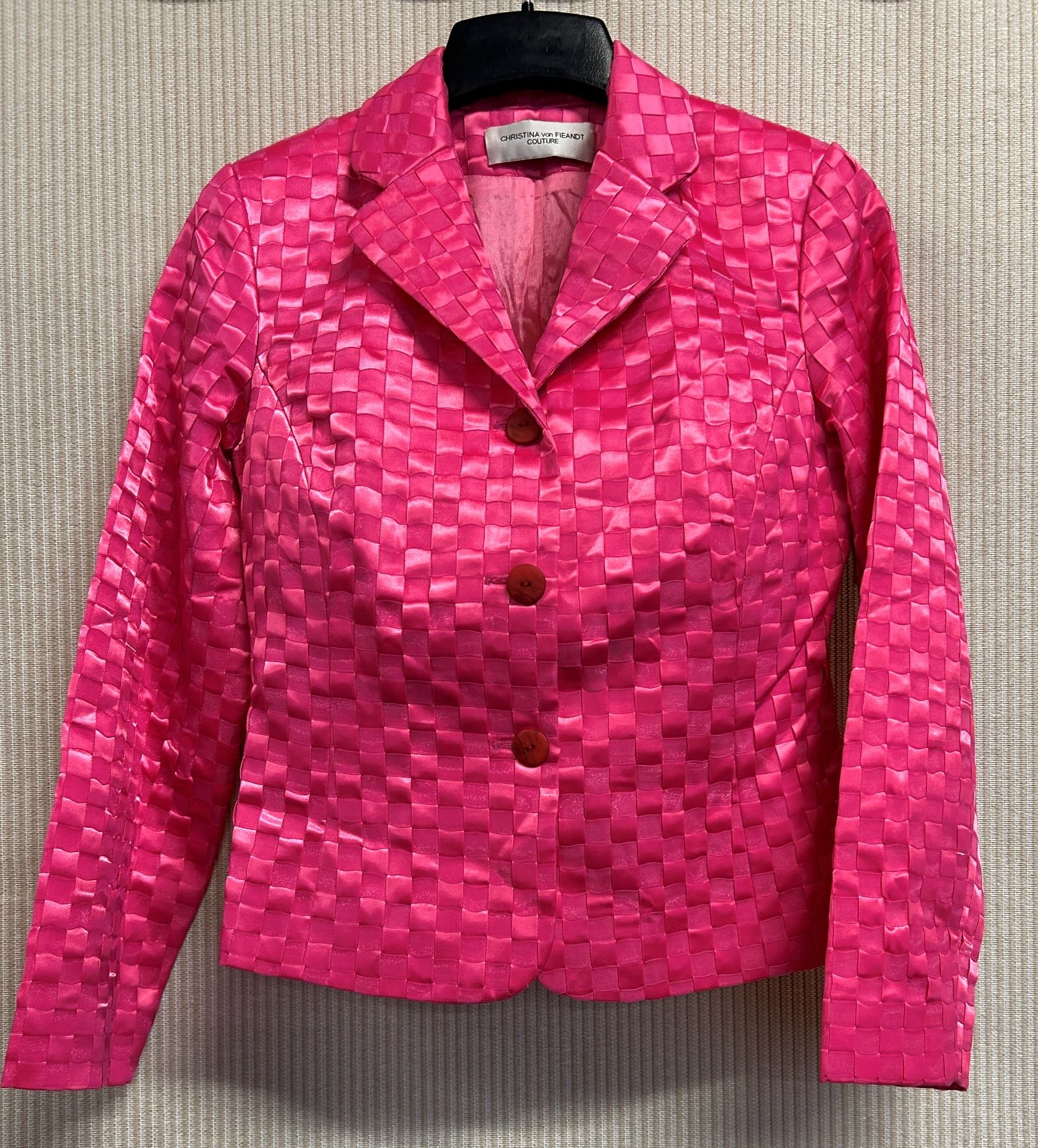 Christina von Fieandt Woven Pink Satin and Chiffon Jacket, Size 8, New, No Tag.