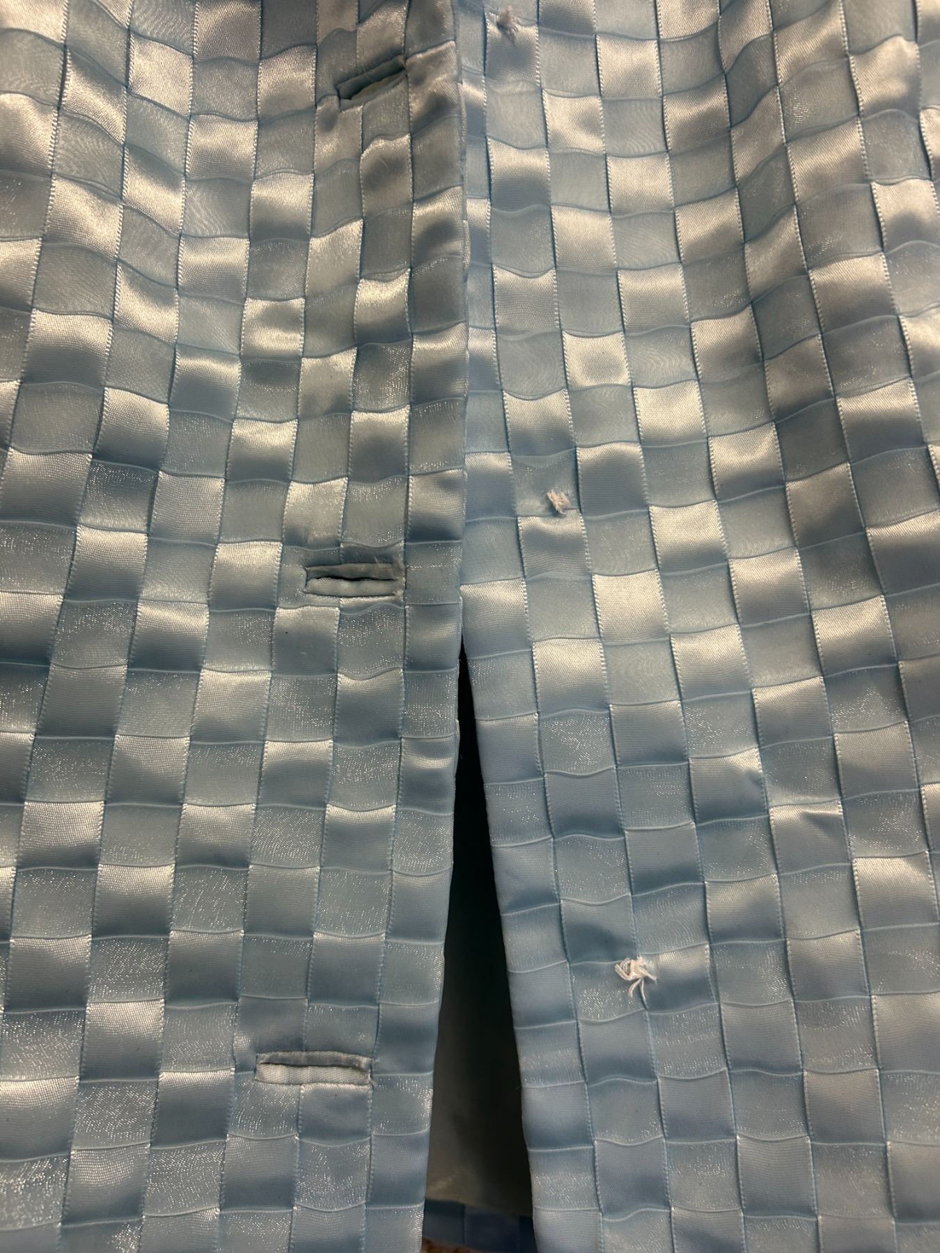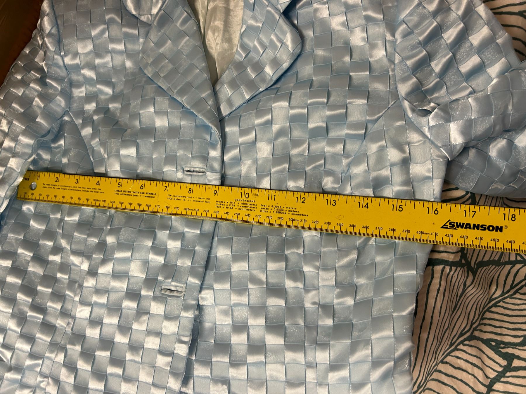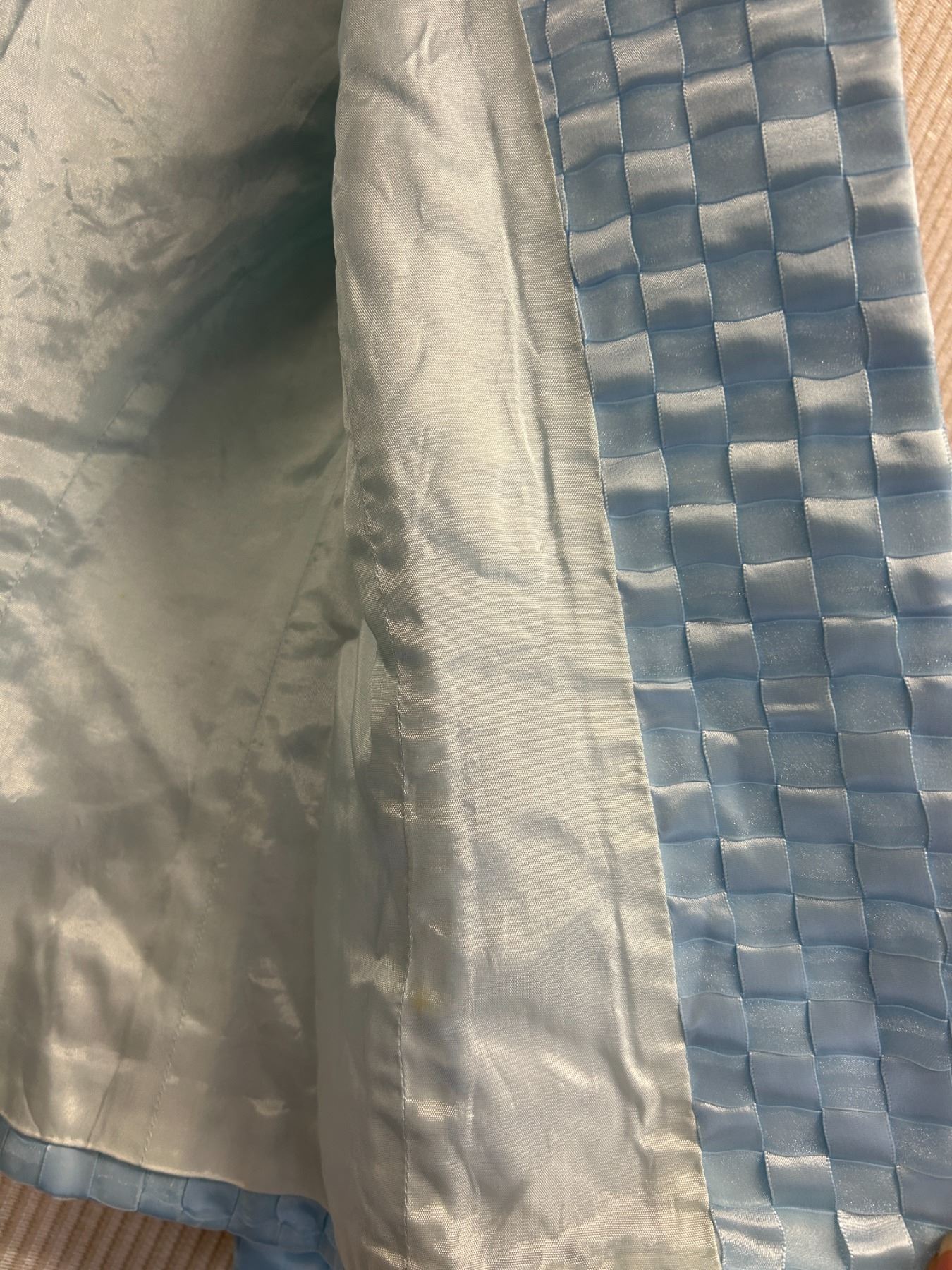 Christina von Fieandt Woven Powder Blue Satin and Chiffon Jacket, No Tag, Missing Buttons (Small Stain).