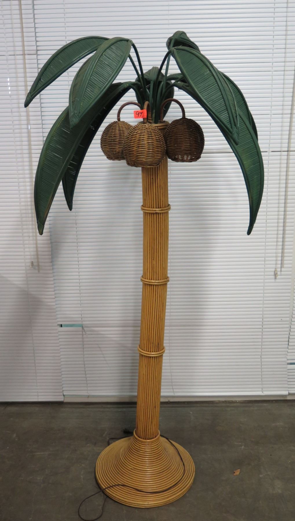 Woven Rattan Palm Tree Lamp with 4 Coconut Lights & Leaves, Approx. 75" Tall