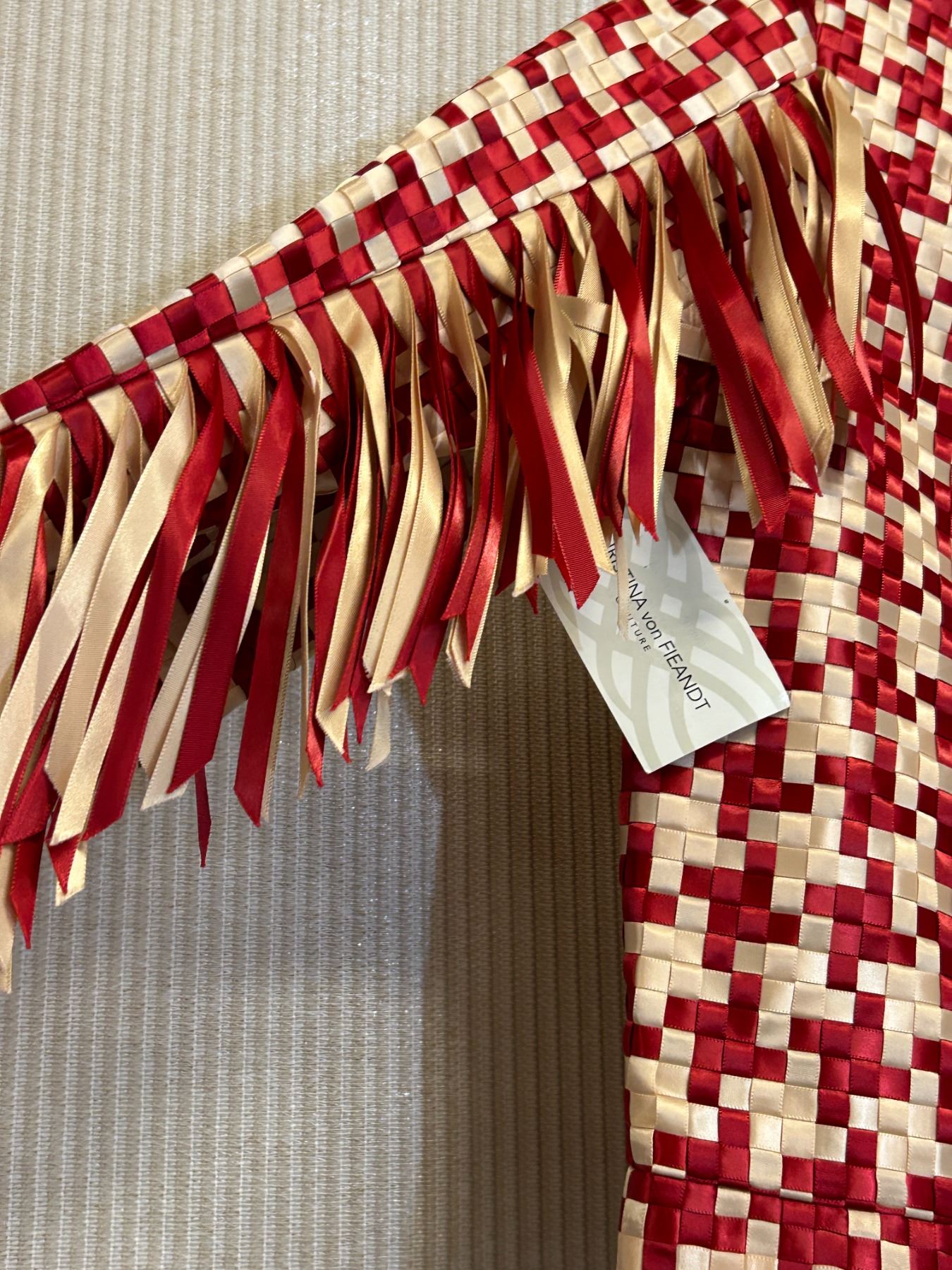 Christina Von Fieandt resided in Hawaii for 38 years and was highly esteemed for her innovative approach in reimagining the traditional Hawaiian art of lauhala weaving into ribbon weaving to create her one-of-a kind designer dresses, evening gowns, coats, jackets, suits, and accessories. Her creations have graced runways and outfitted dozens of pageant contestants, including winners of titles like Miss America, Mrs. America, Mrs. USA, Miss USA, and Miss Universe along with contestants representing other countries. Her regular clientele included prominent business leaders and influential political figures in Hawaii.