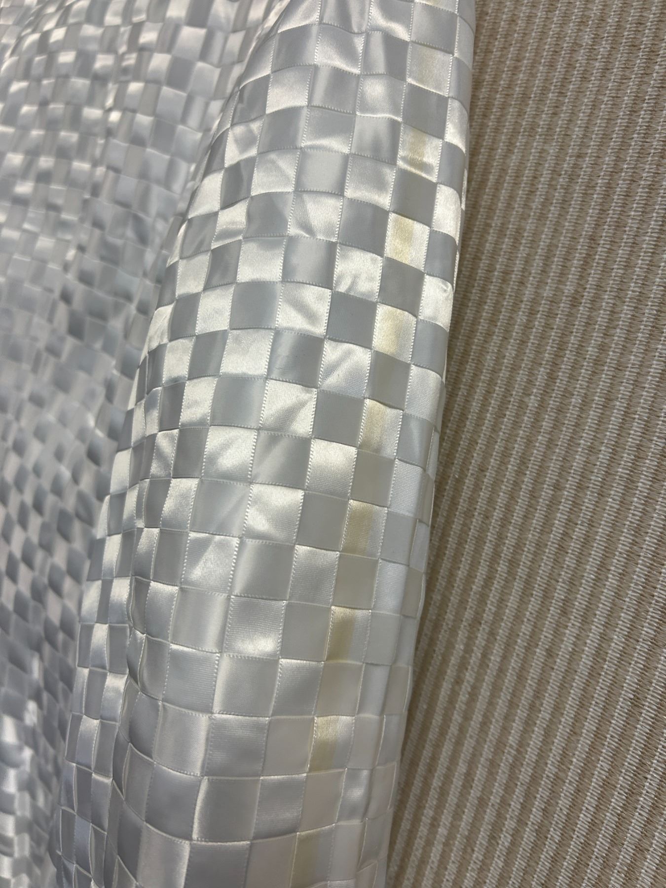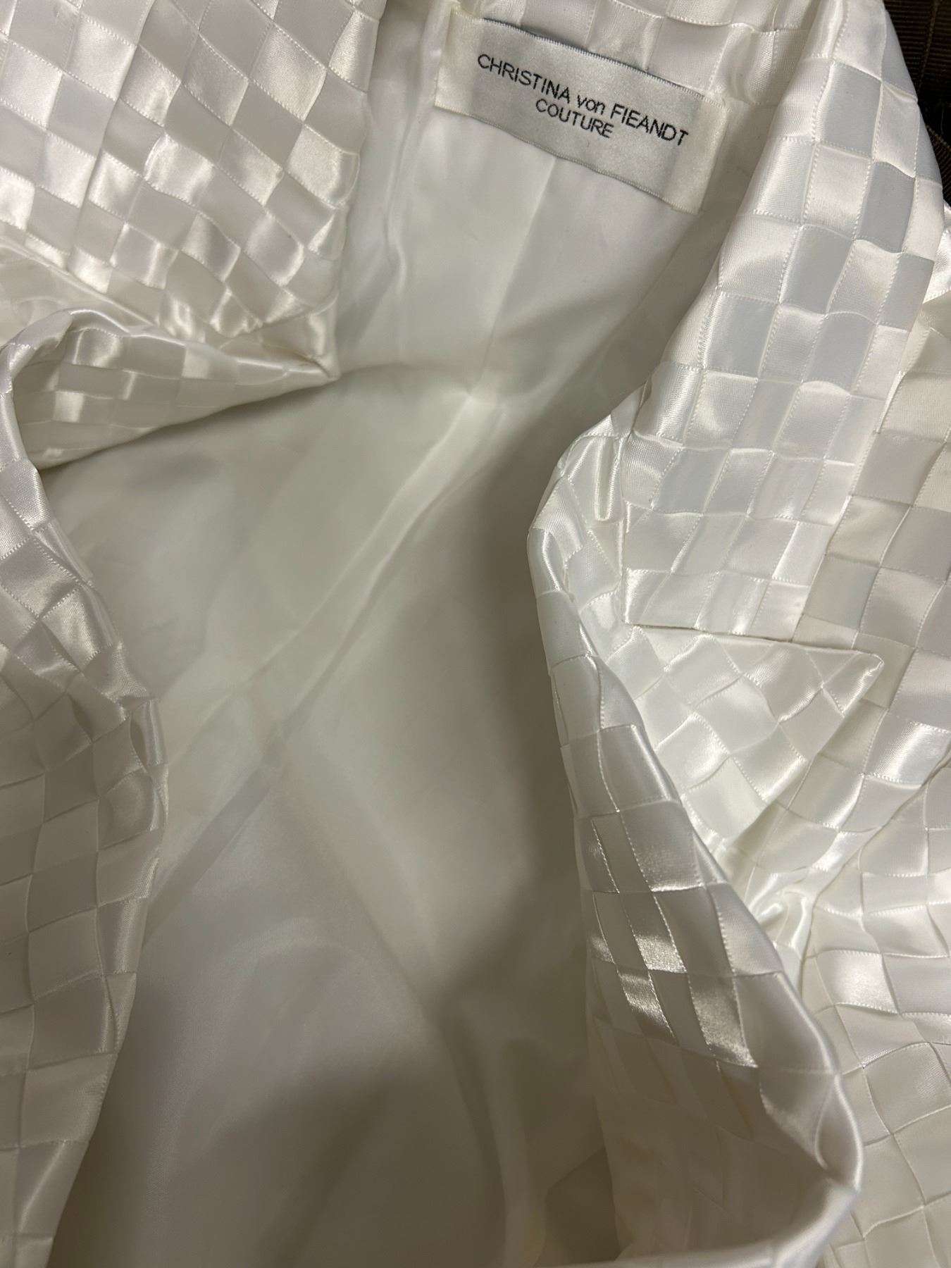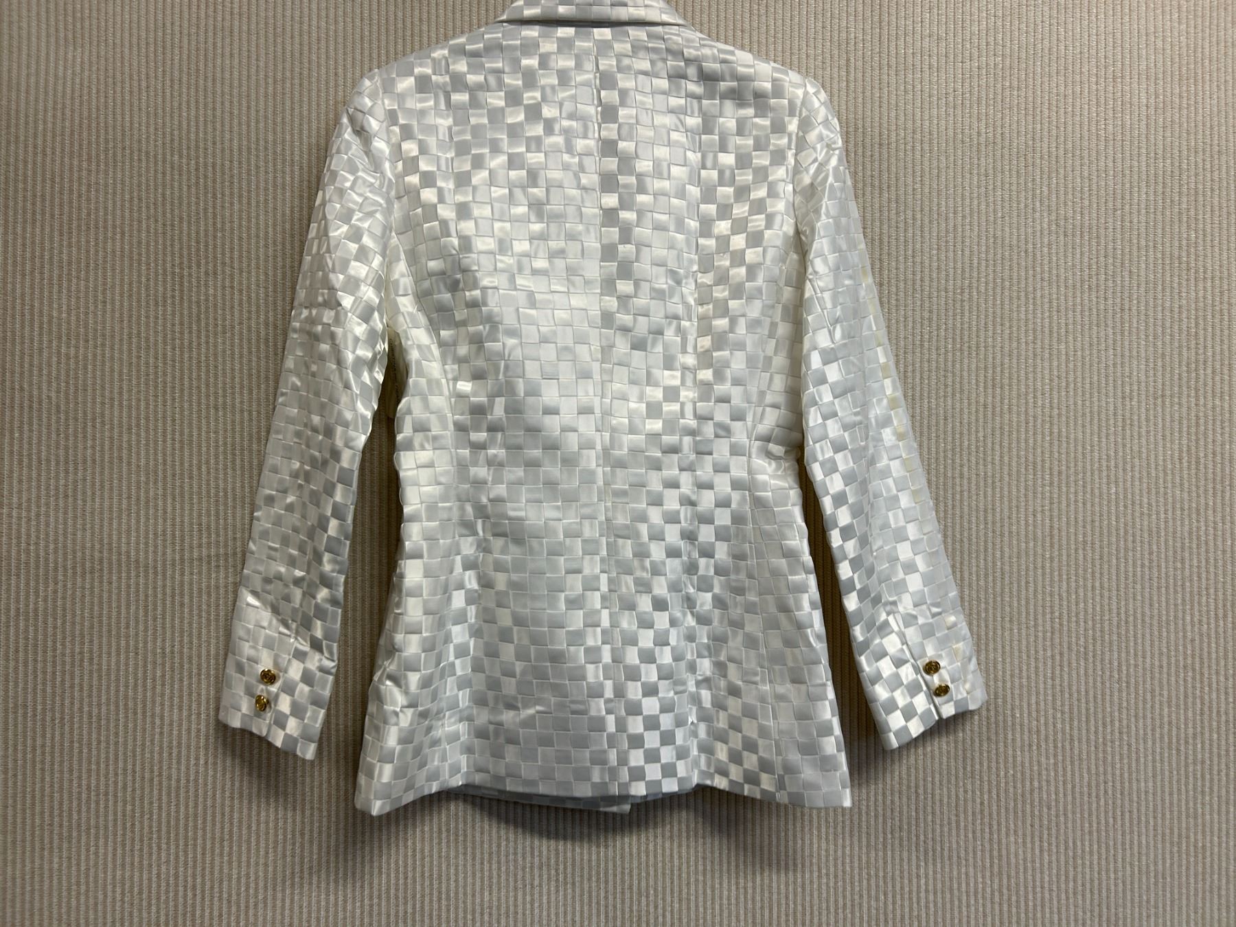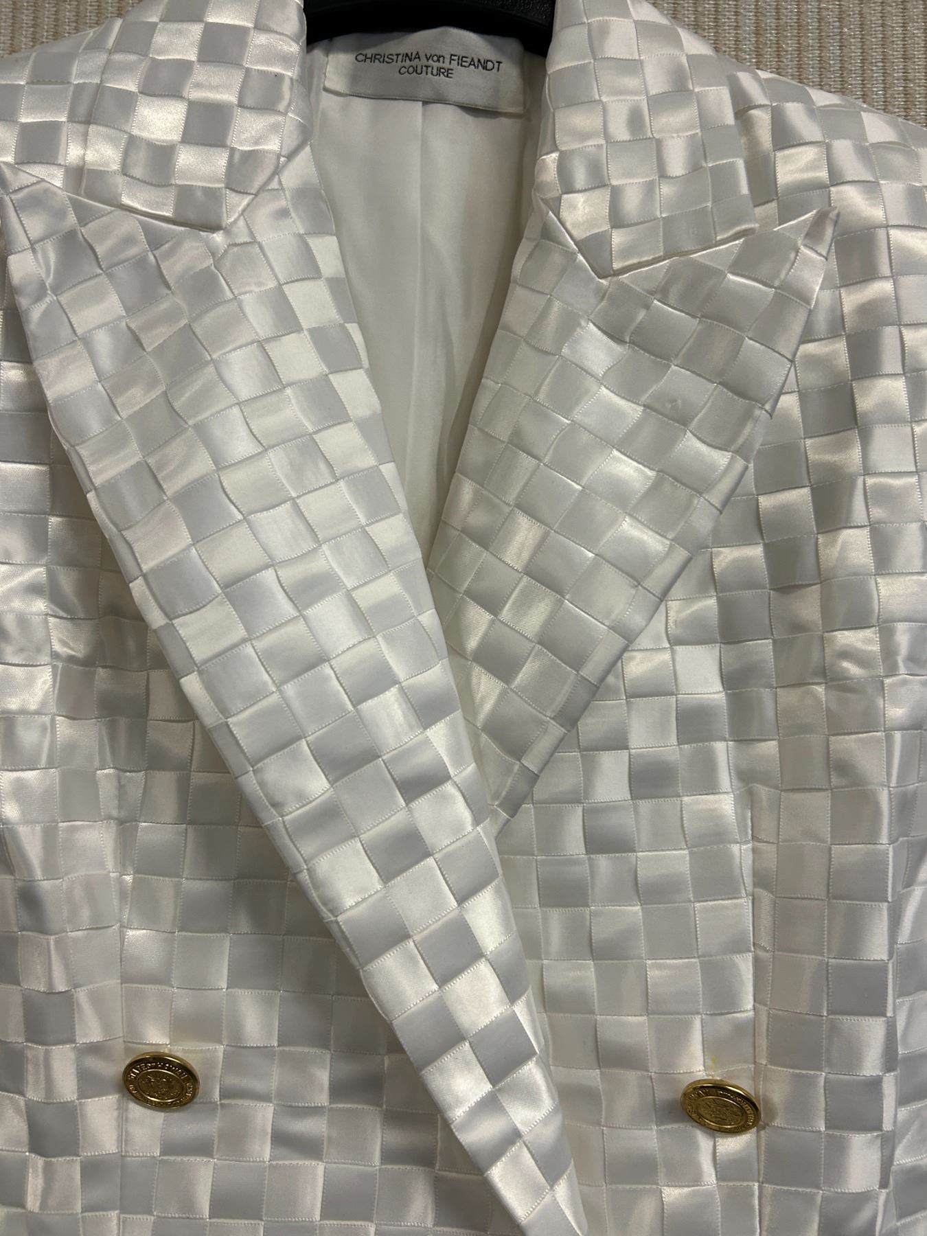 Christina von Fieandt Woven Solid Double Button Blazer - Satin, White, Size 8, New with Tag (retail $1650)(faint stains)