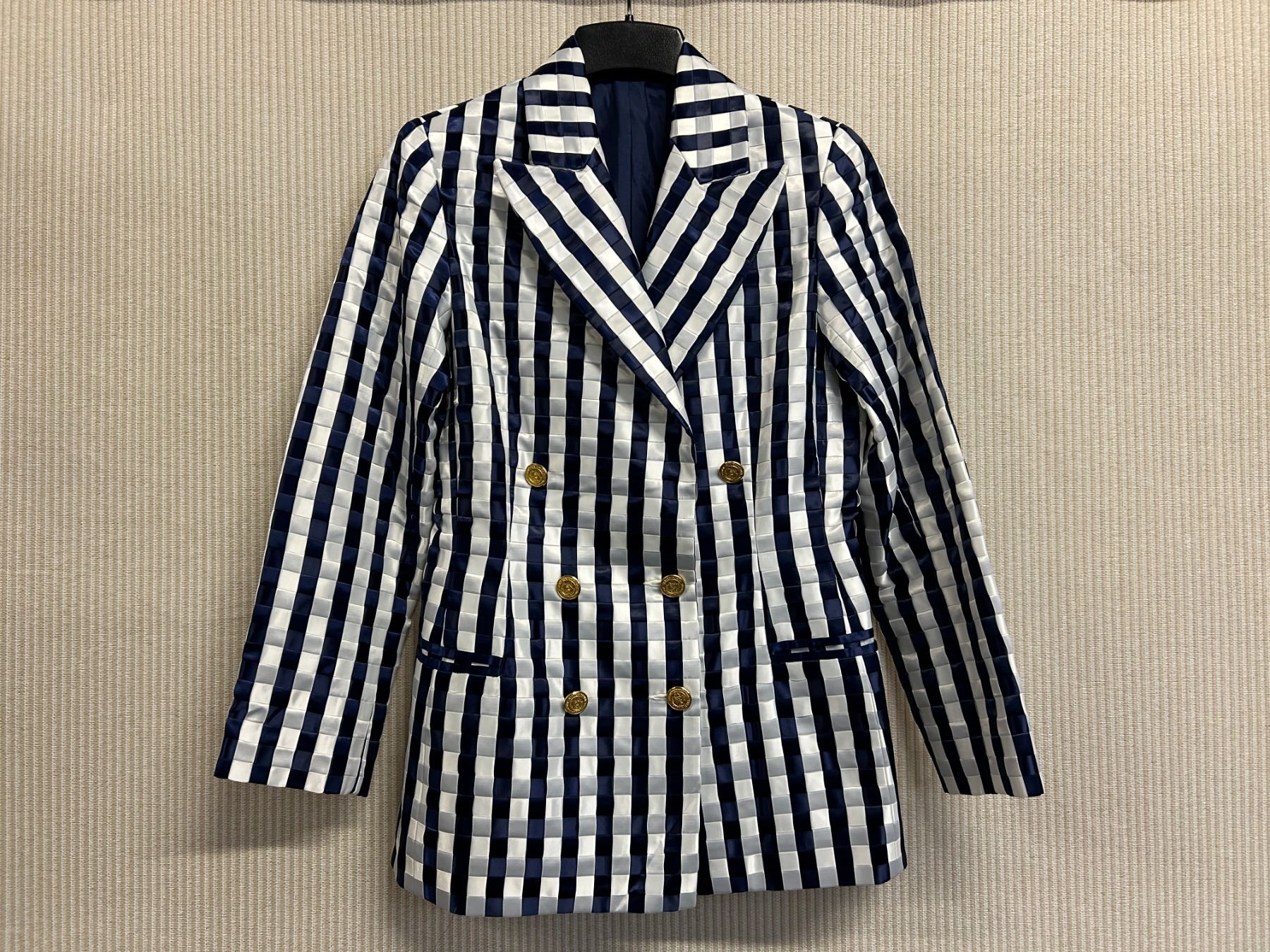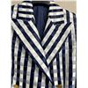 Christina von Fieandt Woven Striped Double Button Blazer - Satin, Navy & White, Size 8, New - No Tag