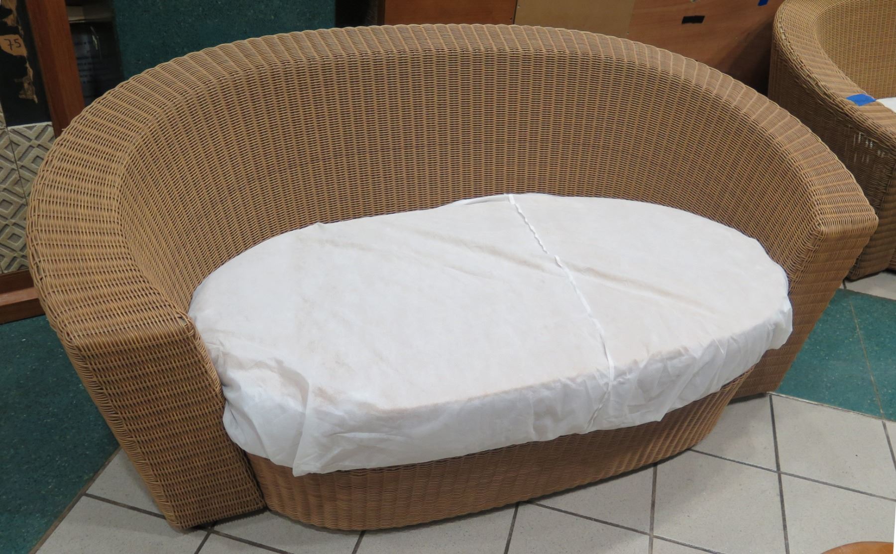 Woven Synthetic Rattan Lounger w/ White Dust Cover Over Cushion 74"x34"