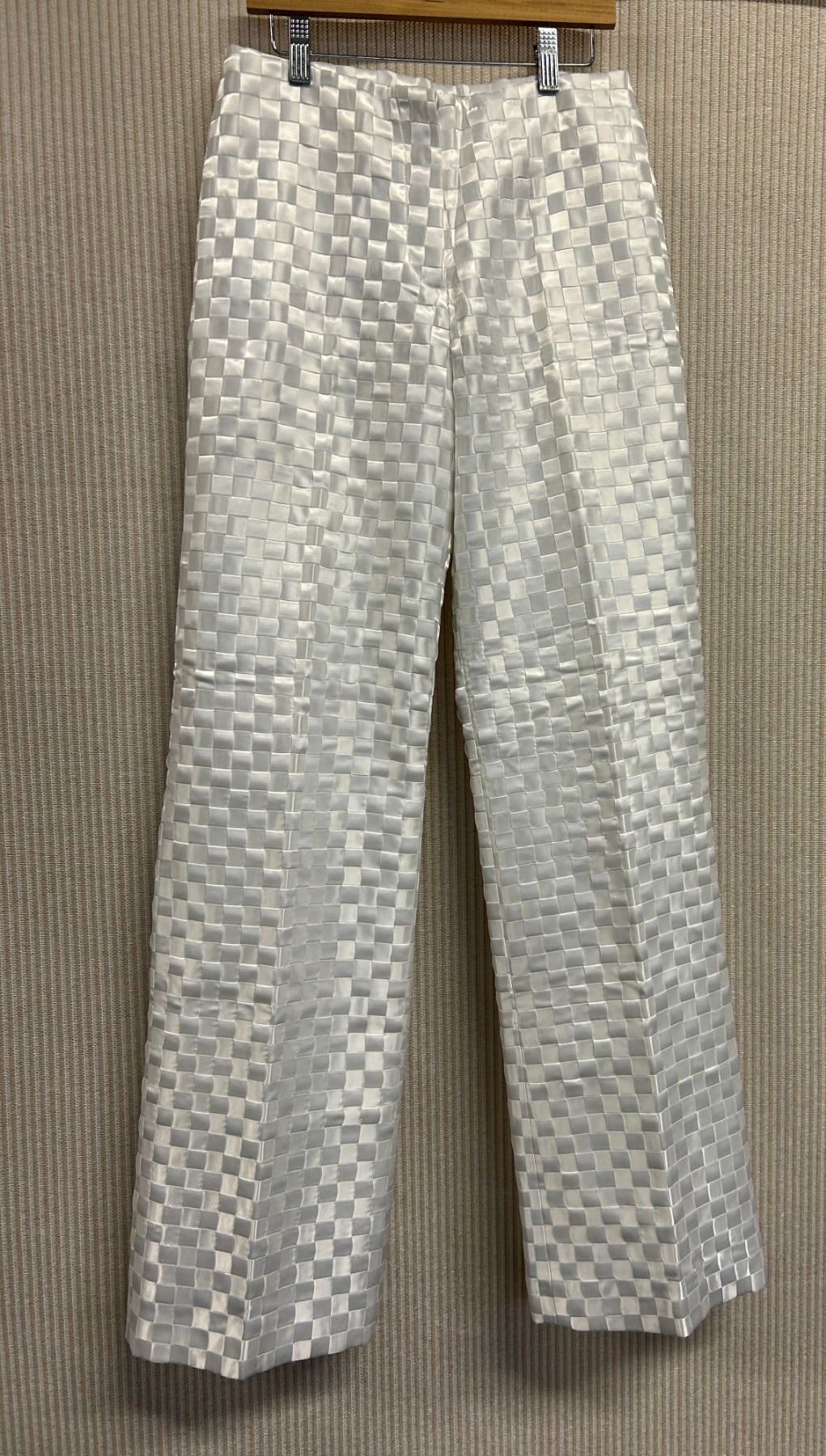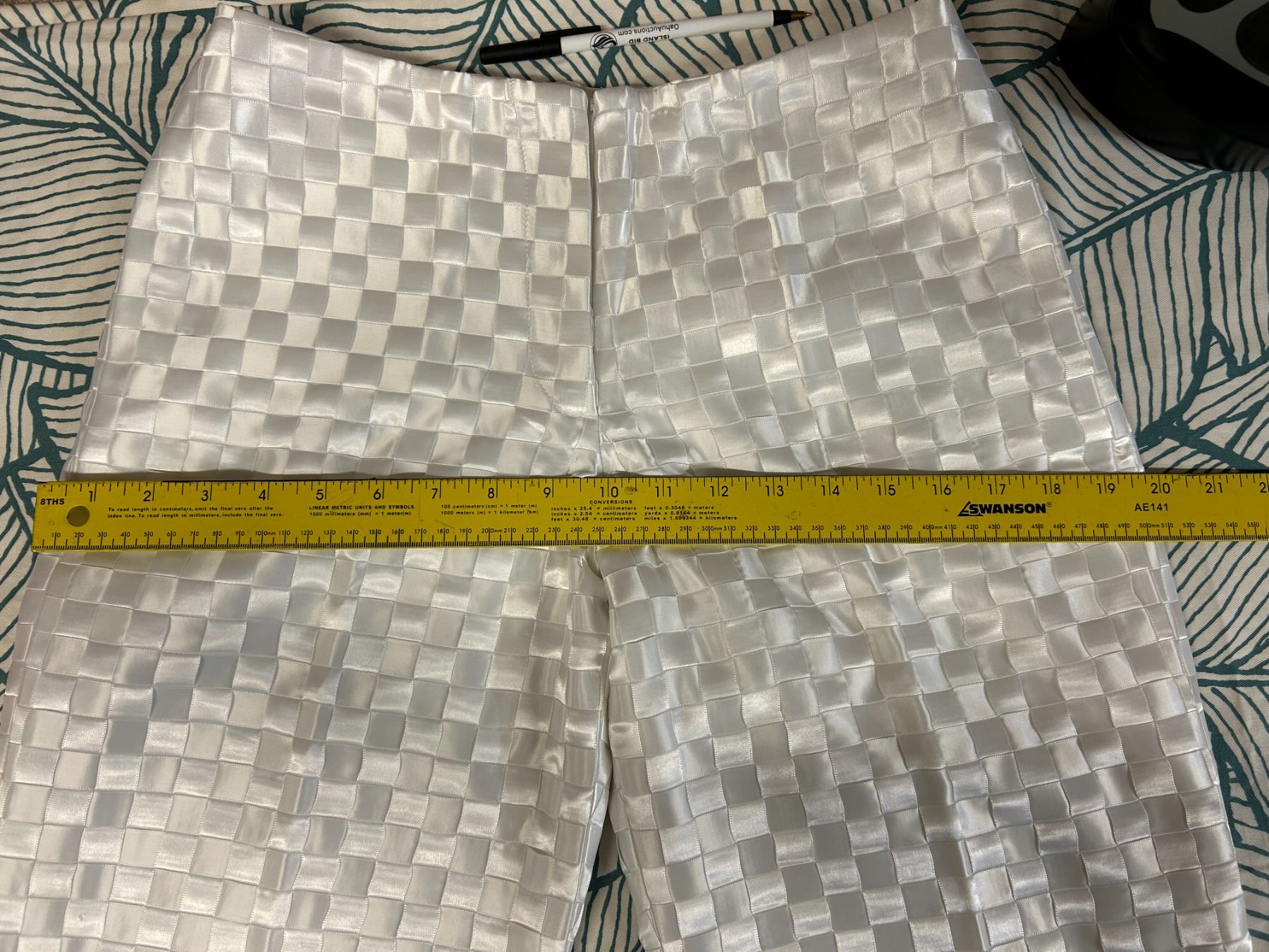 Christina von Fieandt Woven White Satin Pants, No Tag. Has faint spots toward the bottom part of one inner pant leg as shown in the pictures.
