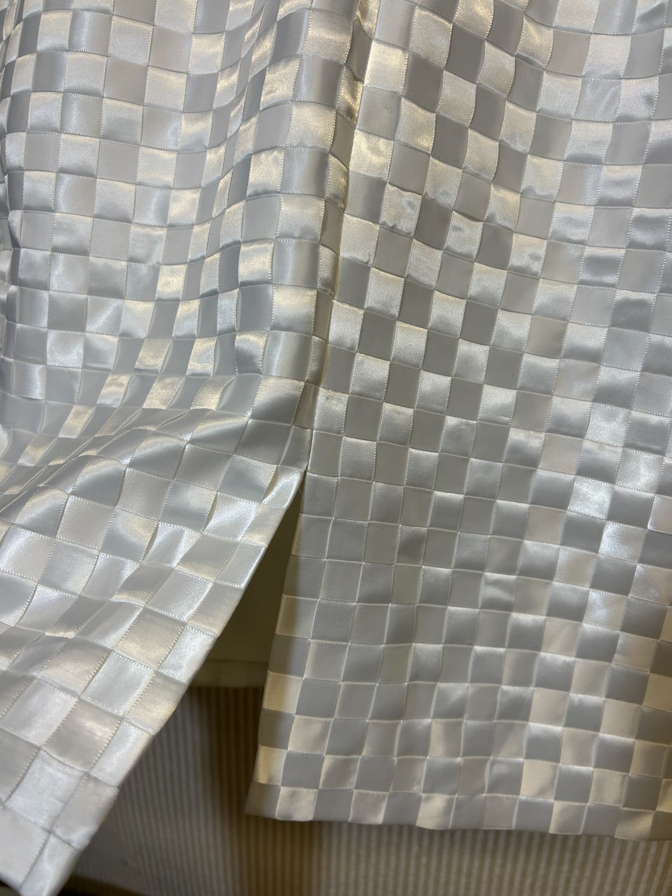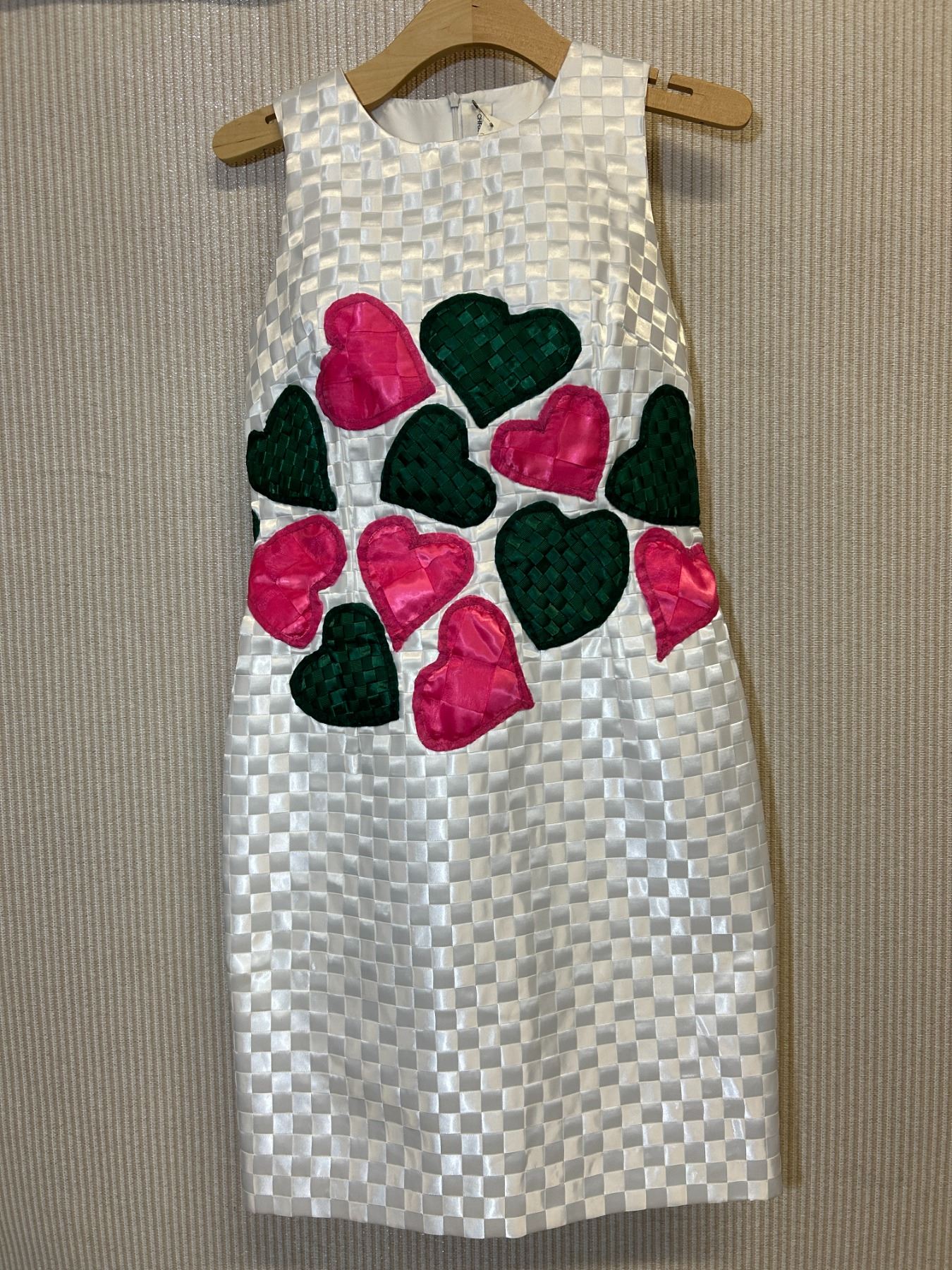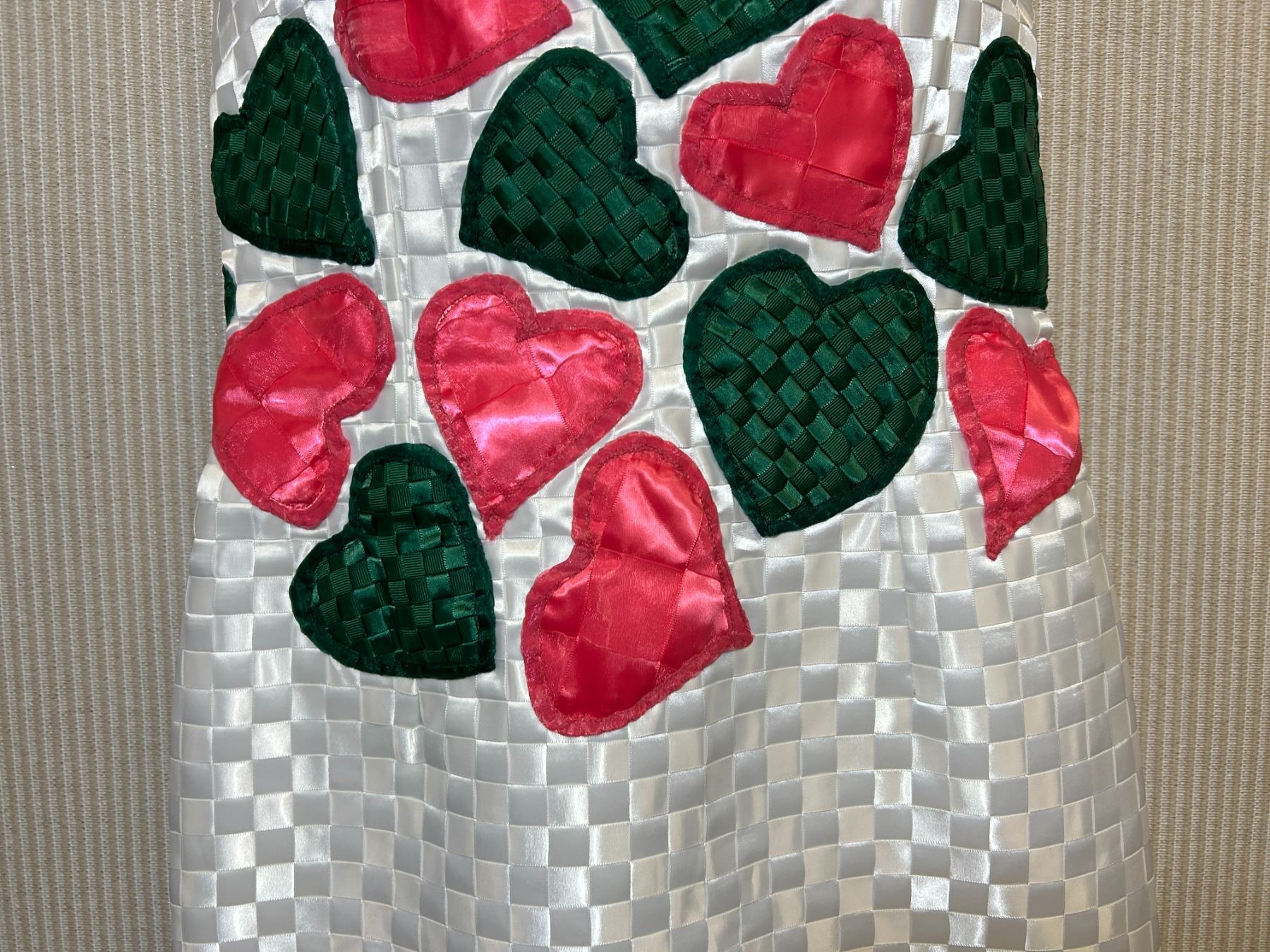 Christina von Fieandt Woven White Satin and Chiffon Cocktail Dress w/ Hearts, Size 8, (Original Retail $1600). See the 2nd picture. Believed to be one of a kind. The only one produced of its kind.