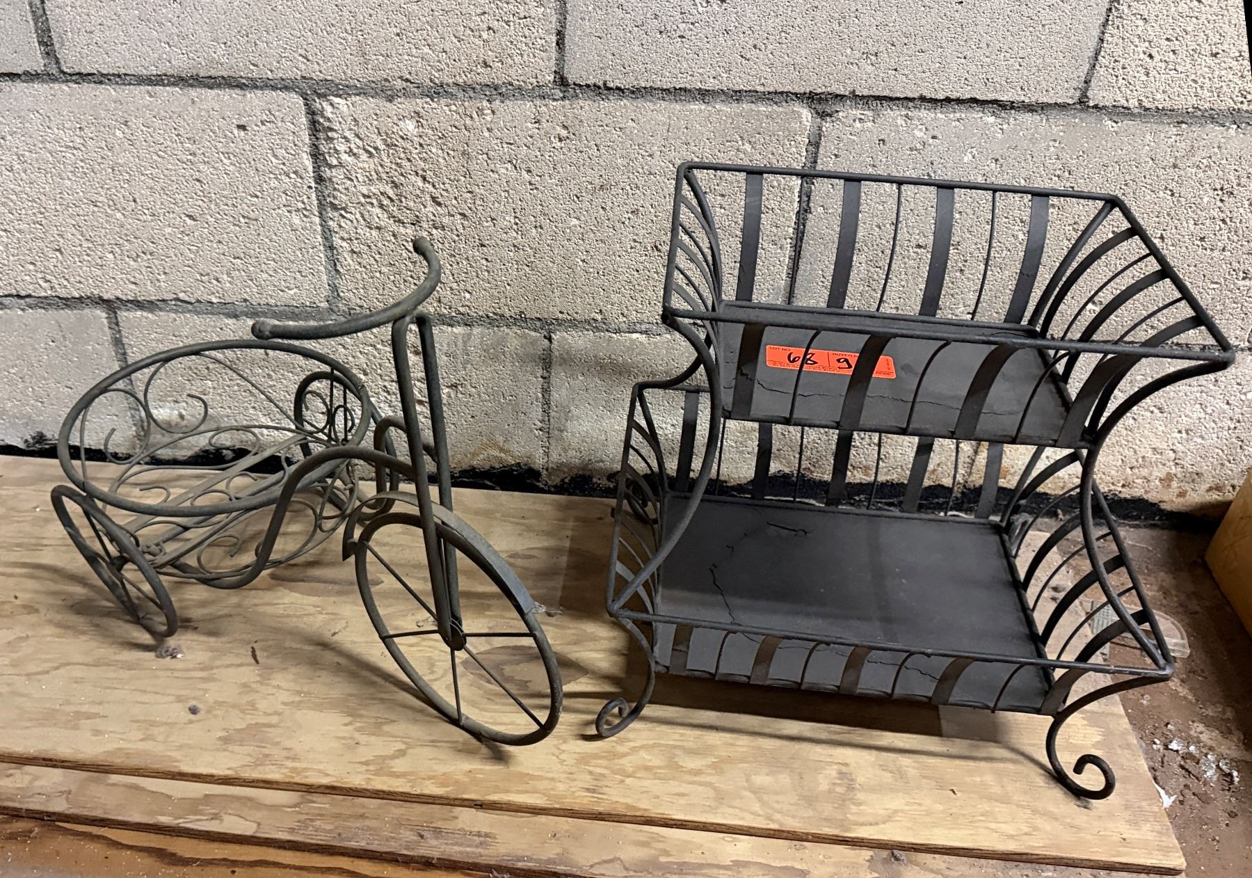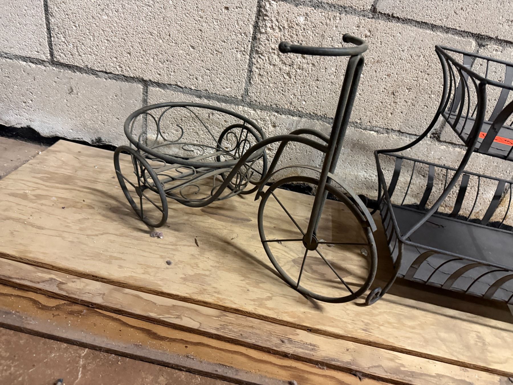 Wrought Iron 2-Tier Basket Display & Bicycle