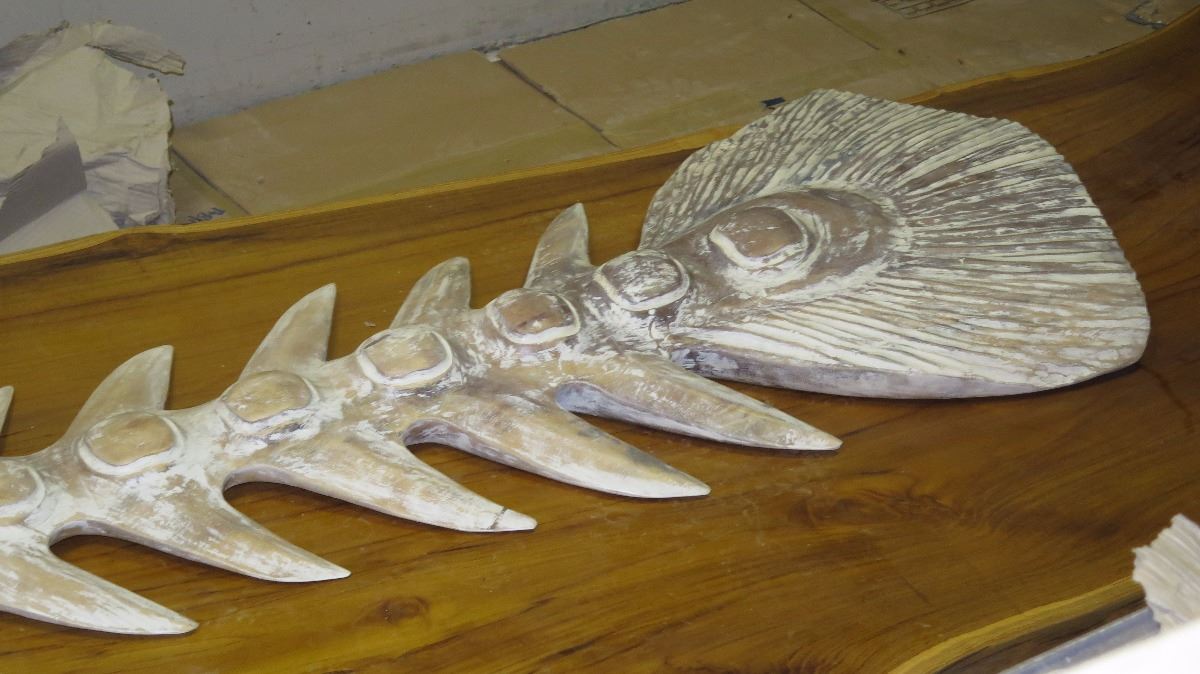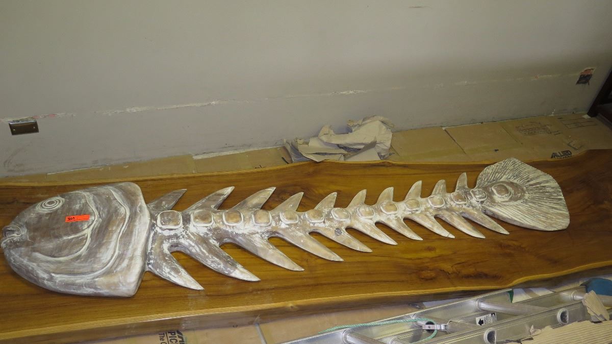 X-Lrg Carved Solid Wood Fish Skeleton - Light Wood, 103"L, 23"W (Back is Flat)