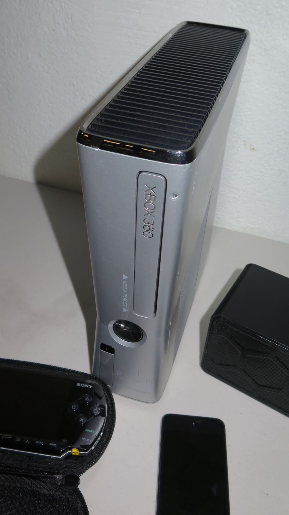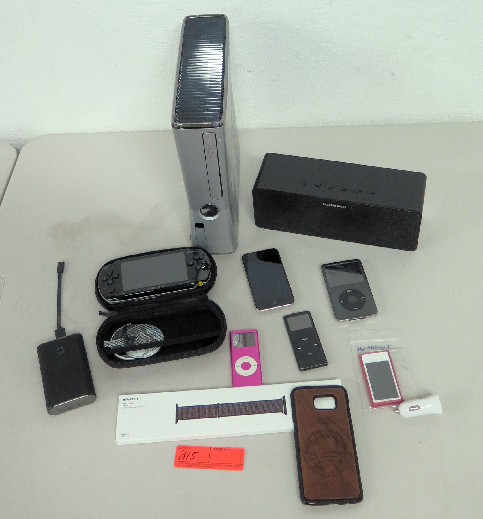 Xbox 360 Game Console, iPods, Speakers, CD Case w/ CDs, etc.