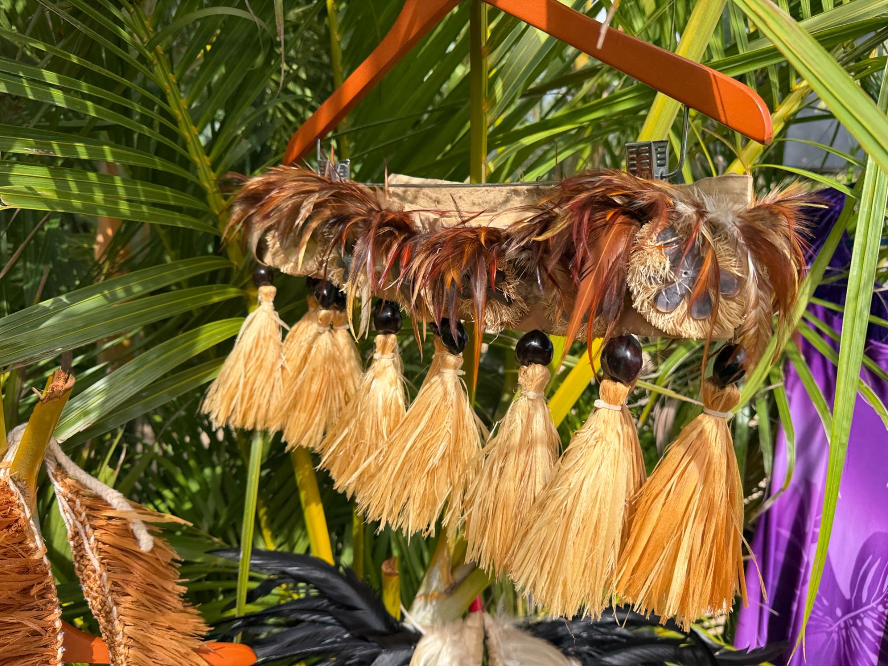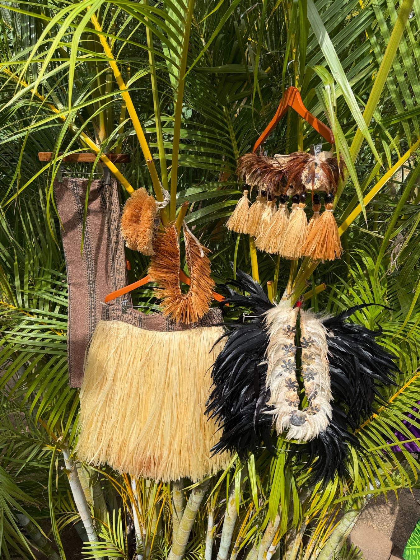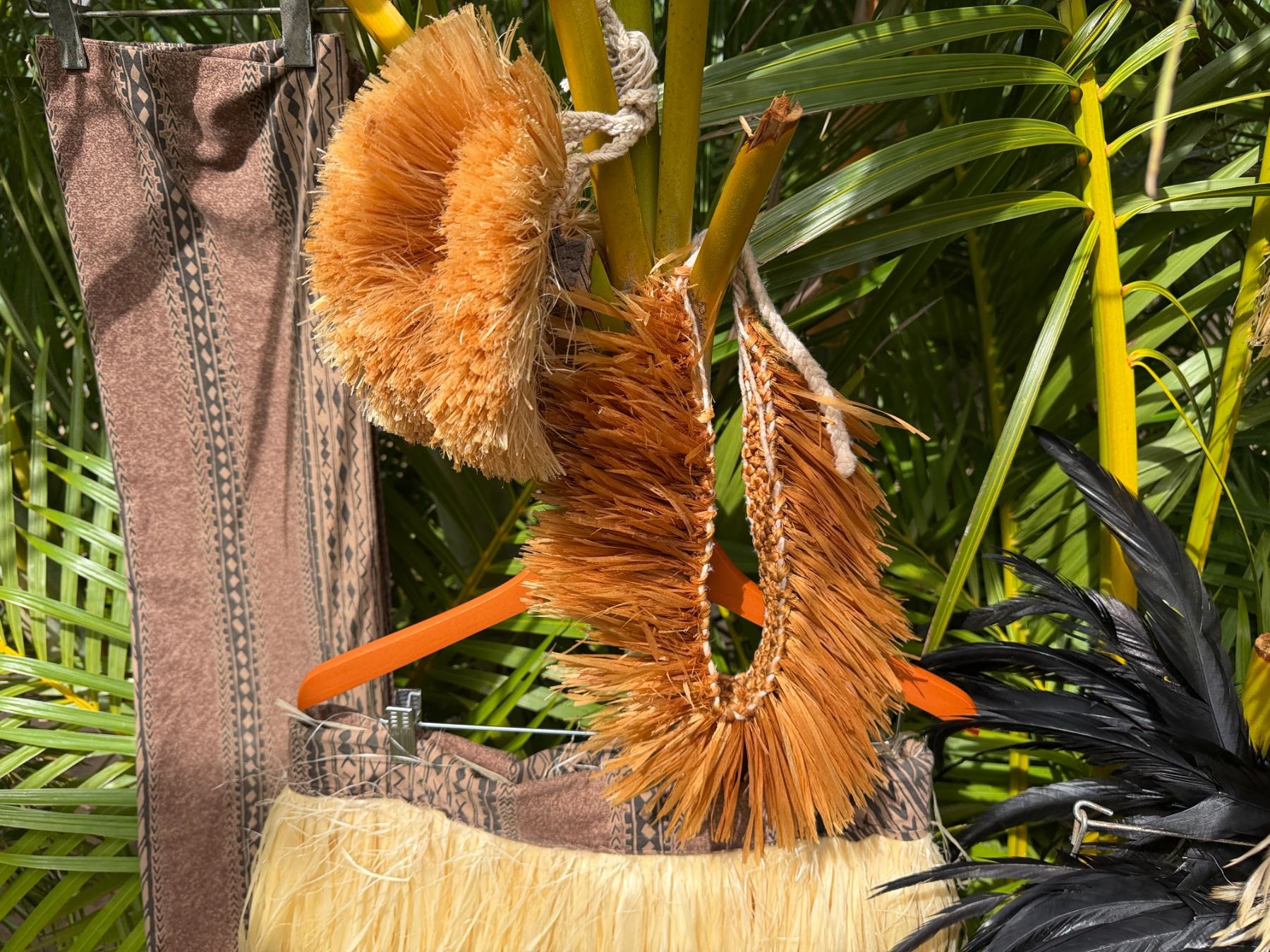 Yellow Artificial Fringe Dance Skirt w/ 2 Hip Hei Bands, Lei, etc
