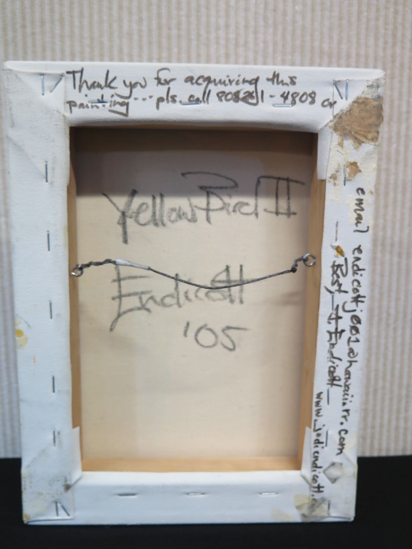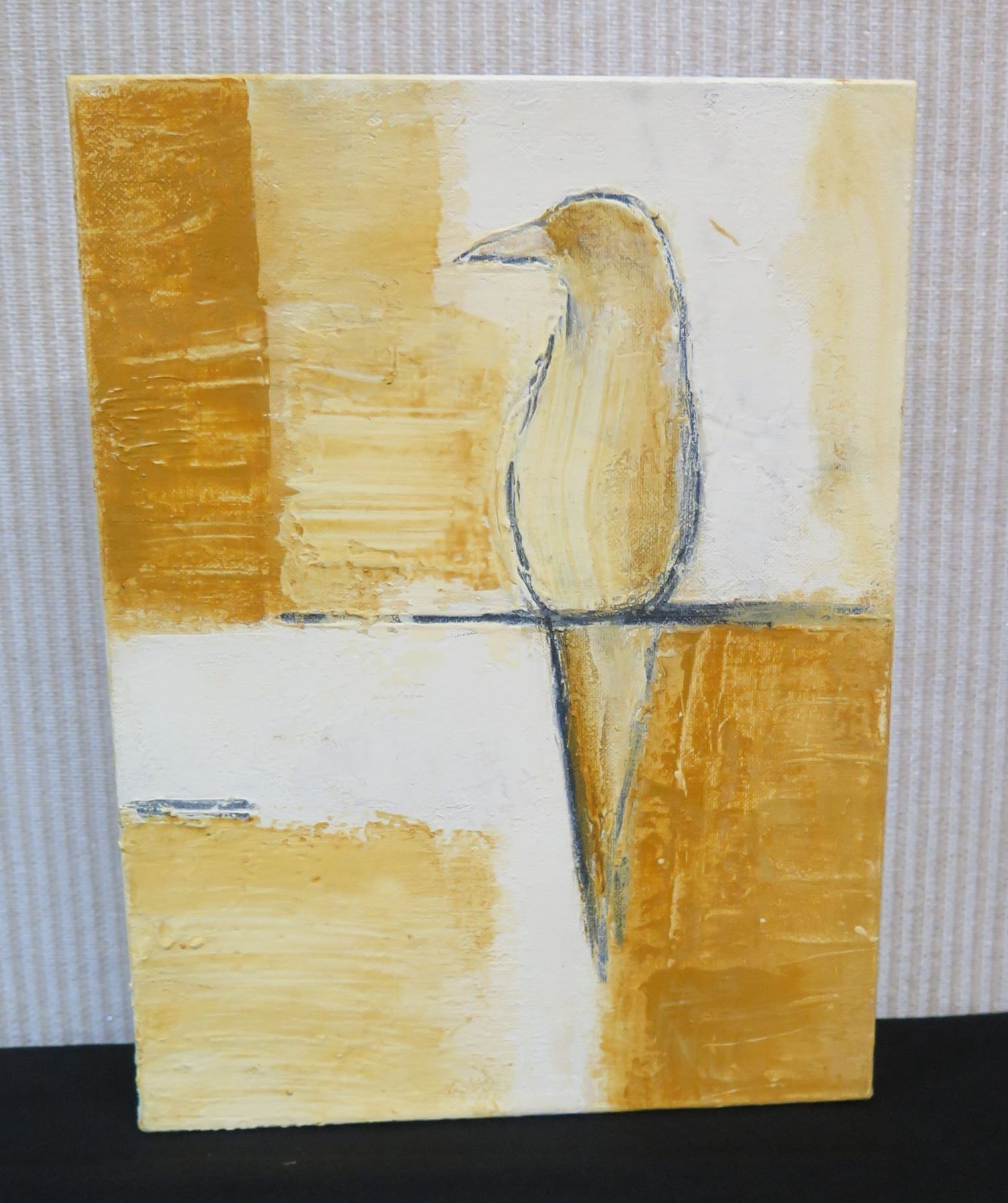 Yellow Bird II Original Painting on Canvas by Artist Endicott, Unframed 9.5" x 13"