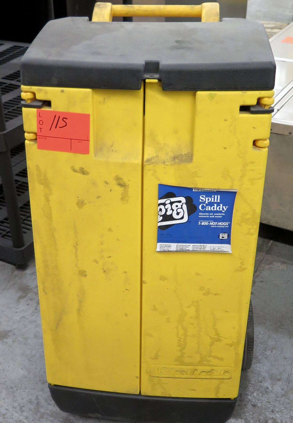 Yellow Plastic Pig Spill Caddy Cabinet w/ Pig Absorbent Socks